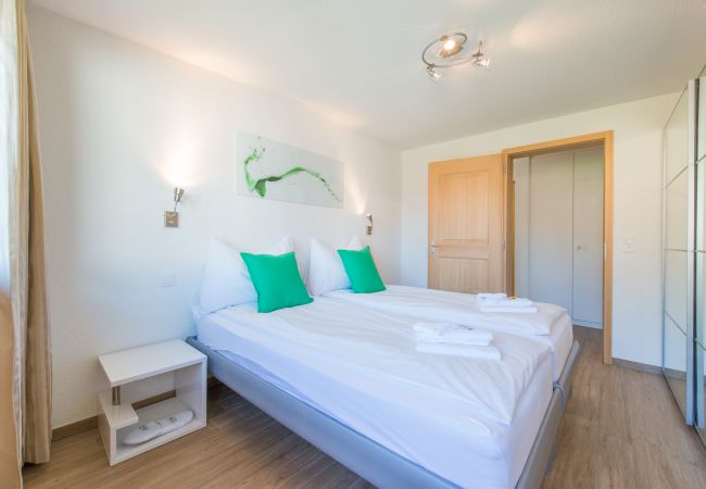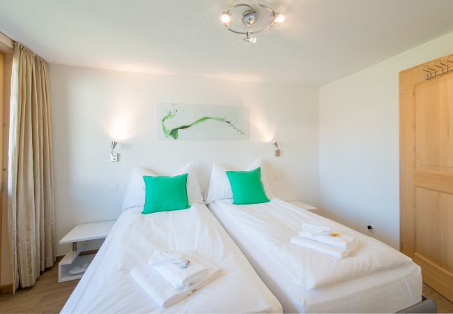 Beide Schlafzimmer haben Zugang zum zweiten Balkon mit Blick auf den Minigolfplatz. Das Hauptschlafzimmer mit eigenem Badezimmer mit Dusche ist mit einem Kingsize-Bett (180x200cm) und das zweite Schlafzimmer mit zwei Einzelbetten (je 90x200cm) ausgestattet. Zu diesem Zimmer gehört ein zweites Badezimmer mit Dusche.