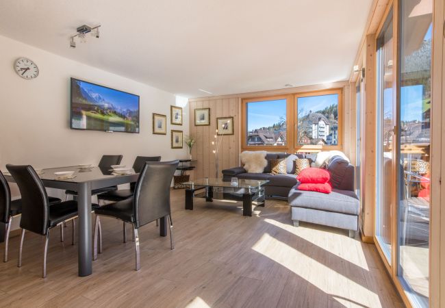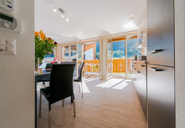 Lassen Sie die Welt an Ihnen vorbeiziehen und genießen Sie die Aussicht auf den Männlichen und den Wengener Anfängerhügel aus den Panoramafenstern im Wohnzimmer.. Das offene Raumkonzept ist gut durchdacht und bietet höchste architektonische Qualität, womit es ein Leichtes wird zu kochen, zu essen, Gäste zu bewirten und zu entspannen – alles in einem Raum!