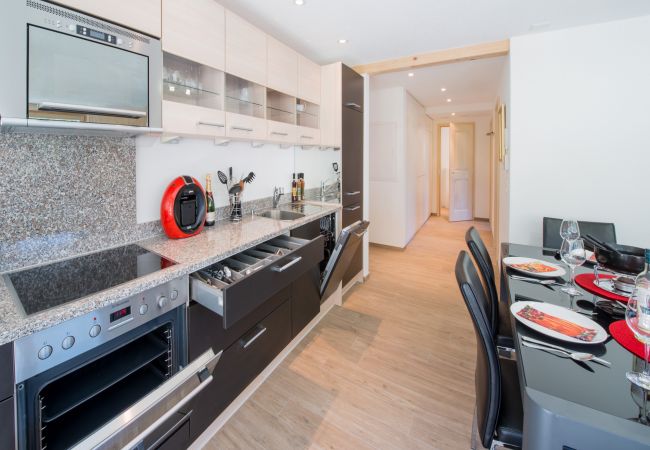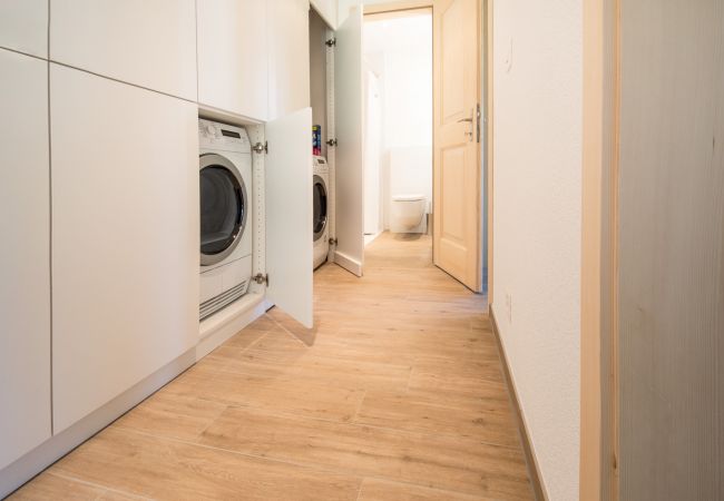 In der Eingangshalle des Apartments befinden sich Schränke mit Waschmaschine und Trockner. Darüber hinaus bietet die Wohnung Zugang zu einem kleinen Lagerraum für Skier und mit Schränken für Skischuhe. Falls gewünscht, können Gäste auch das kostenlose Skidepot neben der Seilbahn im Geschäft Central Sport nutzen.
