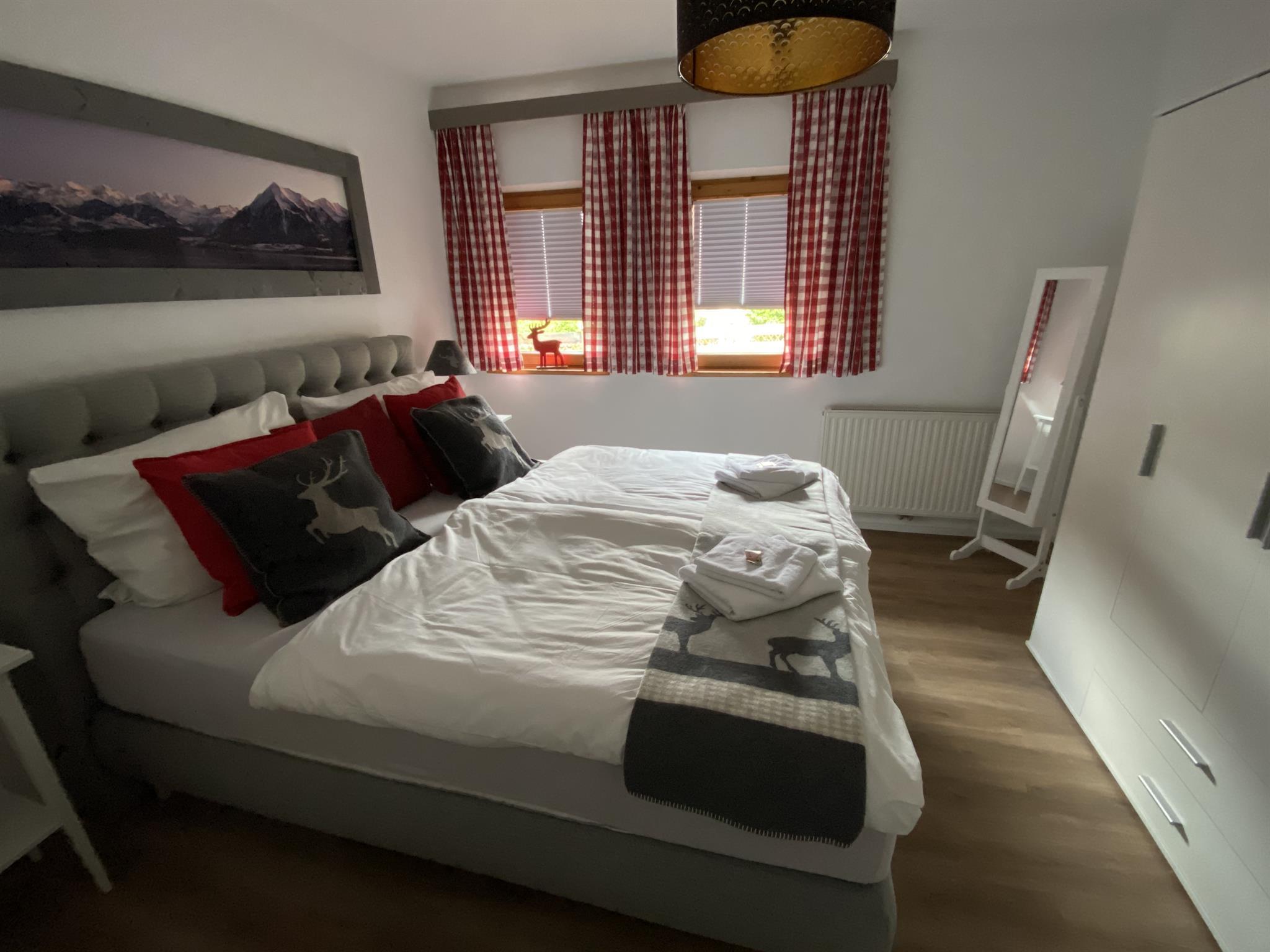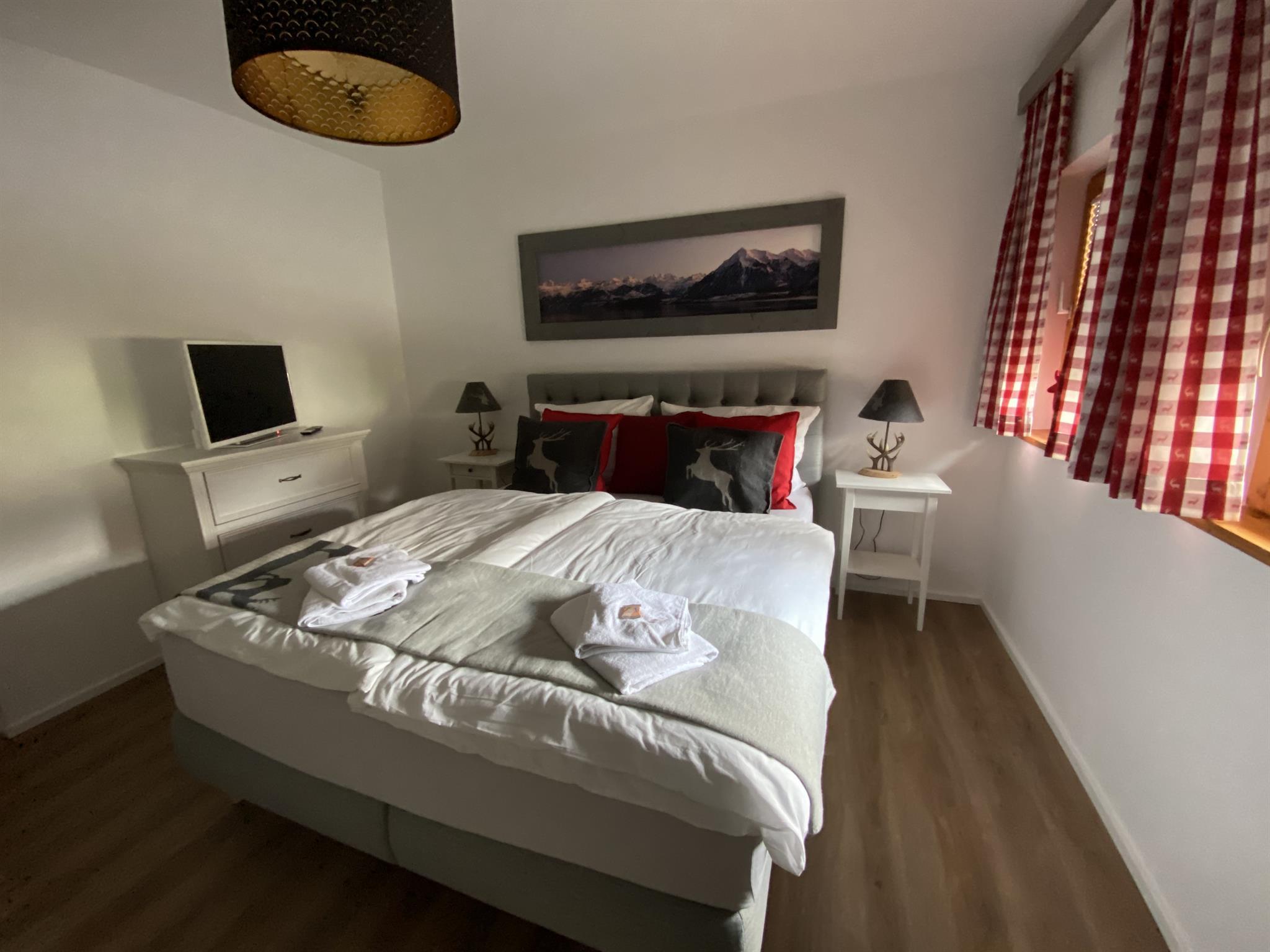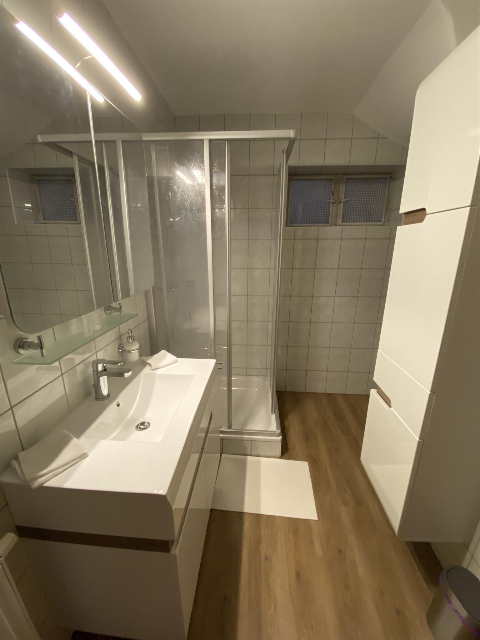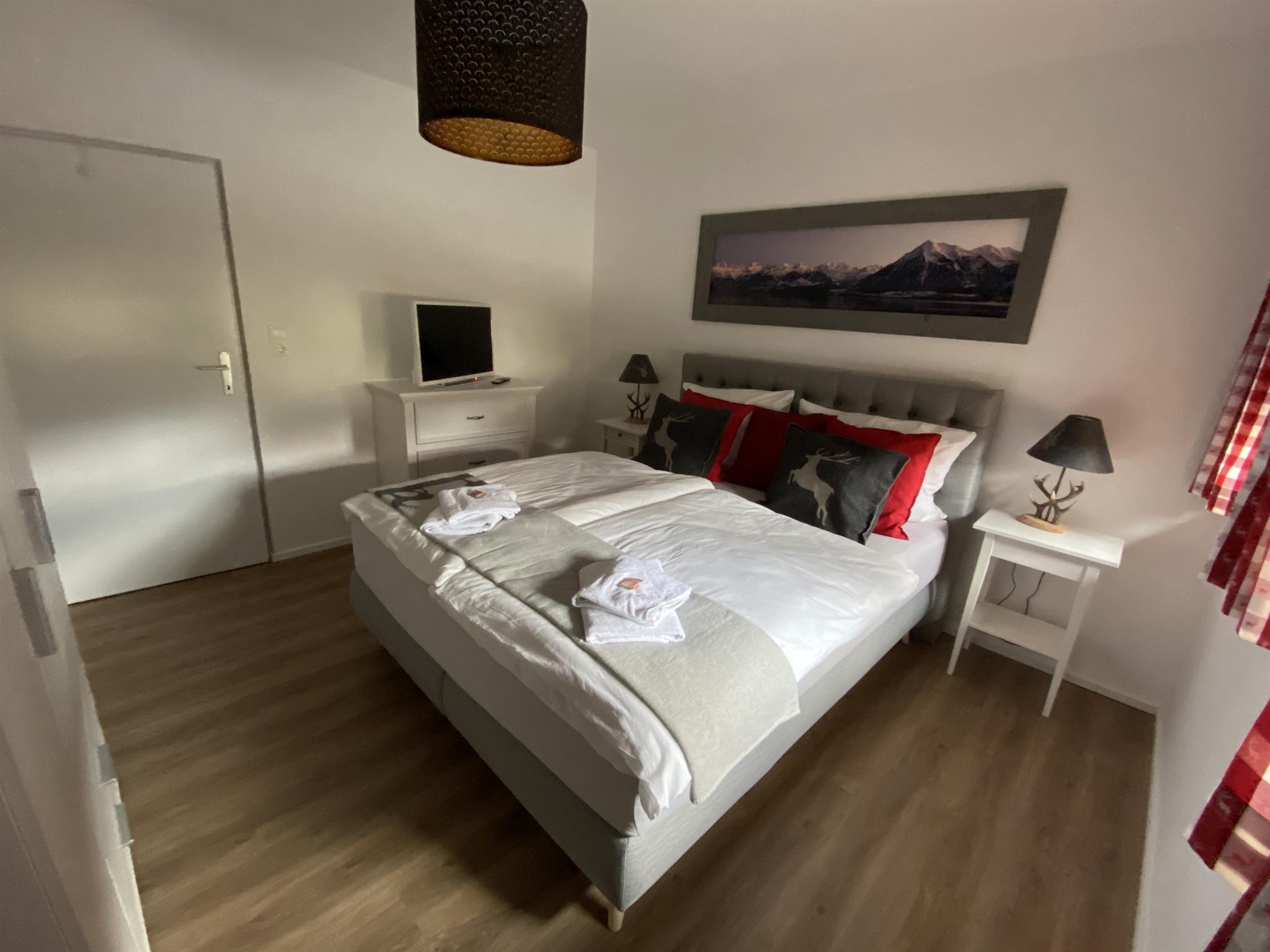 Das Appartement mit 55 qm ist eingerichtet mit 2 Schlafzimmer(Doppelbett), eine Küche, mit Essbereich, Kochherd, Kaffeemaschine, Spülmaschine, Mikrowelle, Kühlschrank,Dusche, Wachbecken, WC, Parkplätze mit Carport.