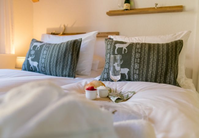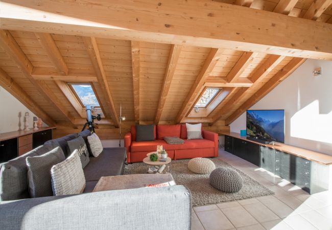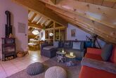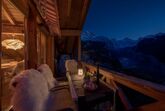 Die Penthouse-Residenz im Chalet Rose ist ein erholsamer und vitalisierender Rückzugsort für alle Jahreszeiten, der an warmen Tagen den Blick nach draußen lenkt, während man es sich an einem Winterabend vor dem Kamin behaglich machen kann.
