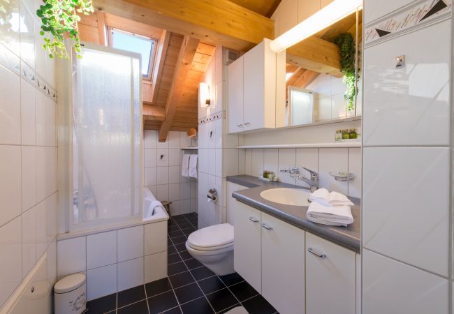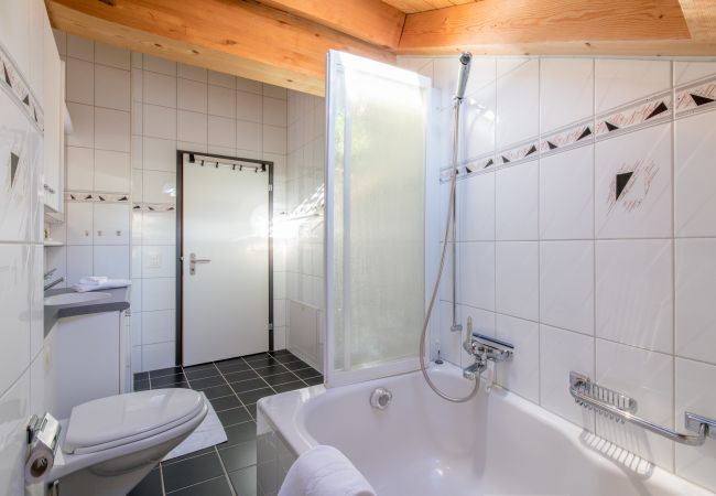 Das gemütliche Hauptschlafzimmer verfügt über ein Queensize-Bett (160x200cm), während das zweite Schlafzimmer zwei Einzelbetten (je 90x200cm) hat. Das Familienbad mit Badewanne steht beiden Schlafzimmern zur Verfügung. Die Wohnung ist für 4 Personen ausgestattet (maximum 2 Erwachsene).