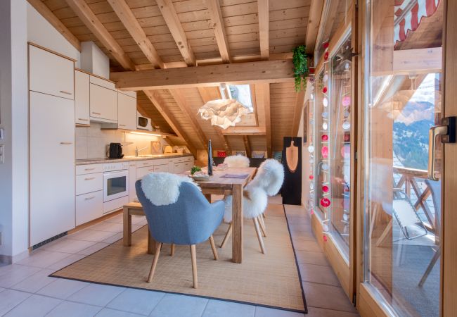 Diese stilvolle Penthouse-Residenz im Chalet Rose in Wengen liegt in der ruhigen Idylle des Alpenglücks und bietet einen atemberaubenden Blick auf die Berge und das Lauterbrunnental. Eine unbestreitbar magische Art, sich zu erholen und wiederaufzuladen.