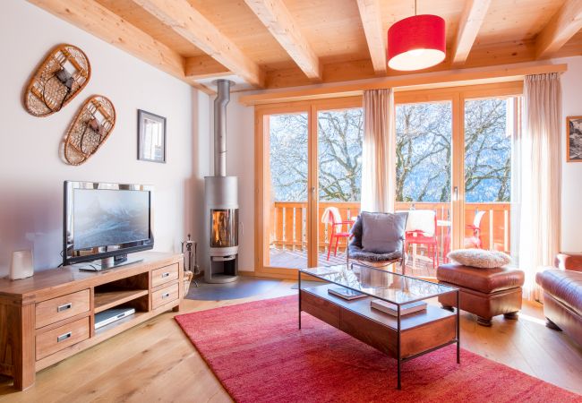 Die geschmackvoll ausgestattet und moderne Unterkunft mit 105 m², mit Blick auf die Berge und das Skigebiet.
