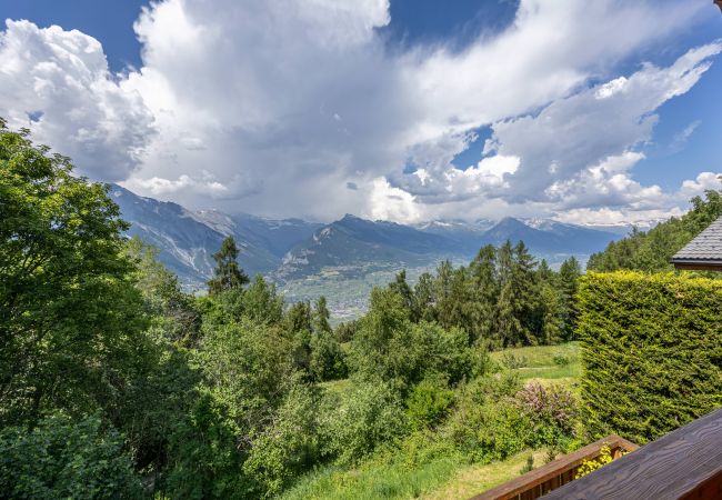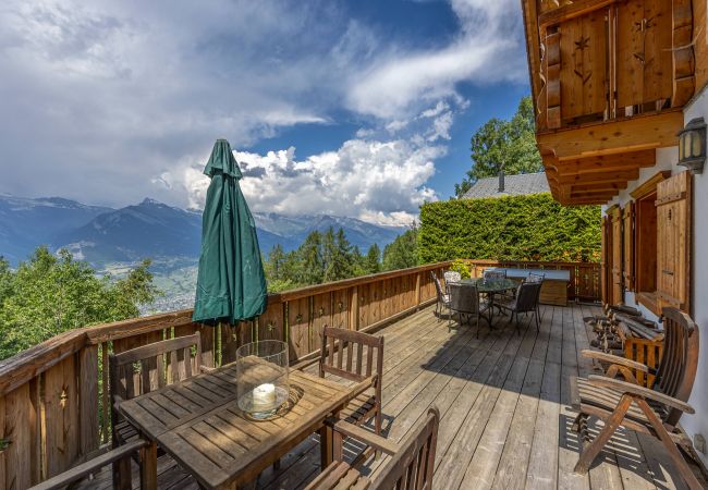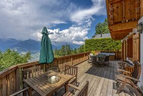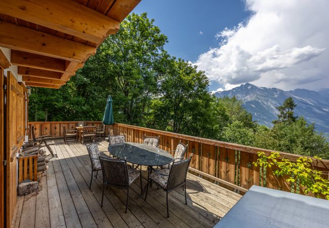 Charmantes Chalet mit atemberaubendem Blick auf die Berge des Rhônetals, an einen Bach und den Wald grenzend; Hirsche und andere Tiere werden hier häufig gesichtet.