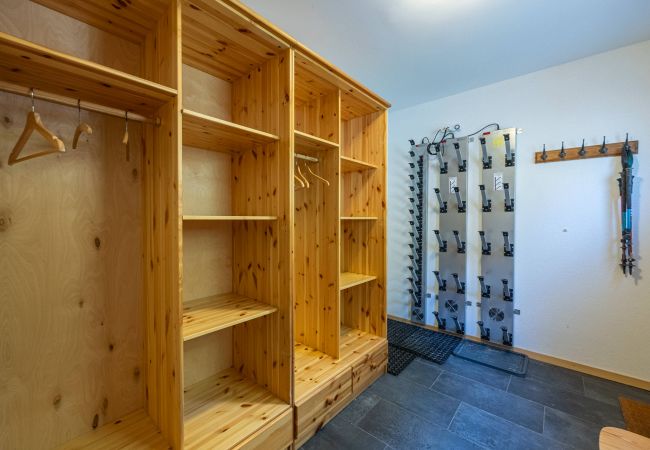 Es gibt zwei Eingänge zum Chalet. Der untere Eingang verfügt über einen Schuhtrockner und Ablagemöglichkeiten für Ski-/Bergbekleidung.