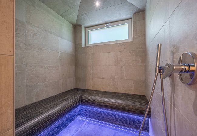 Hamman für 6 Personen mit LED-Leuchten und angeschlossener Bluetooth-Musik.