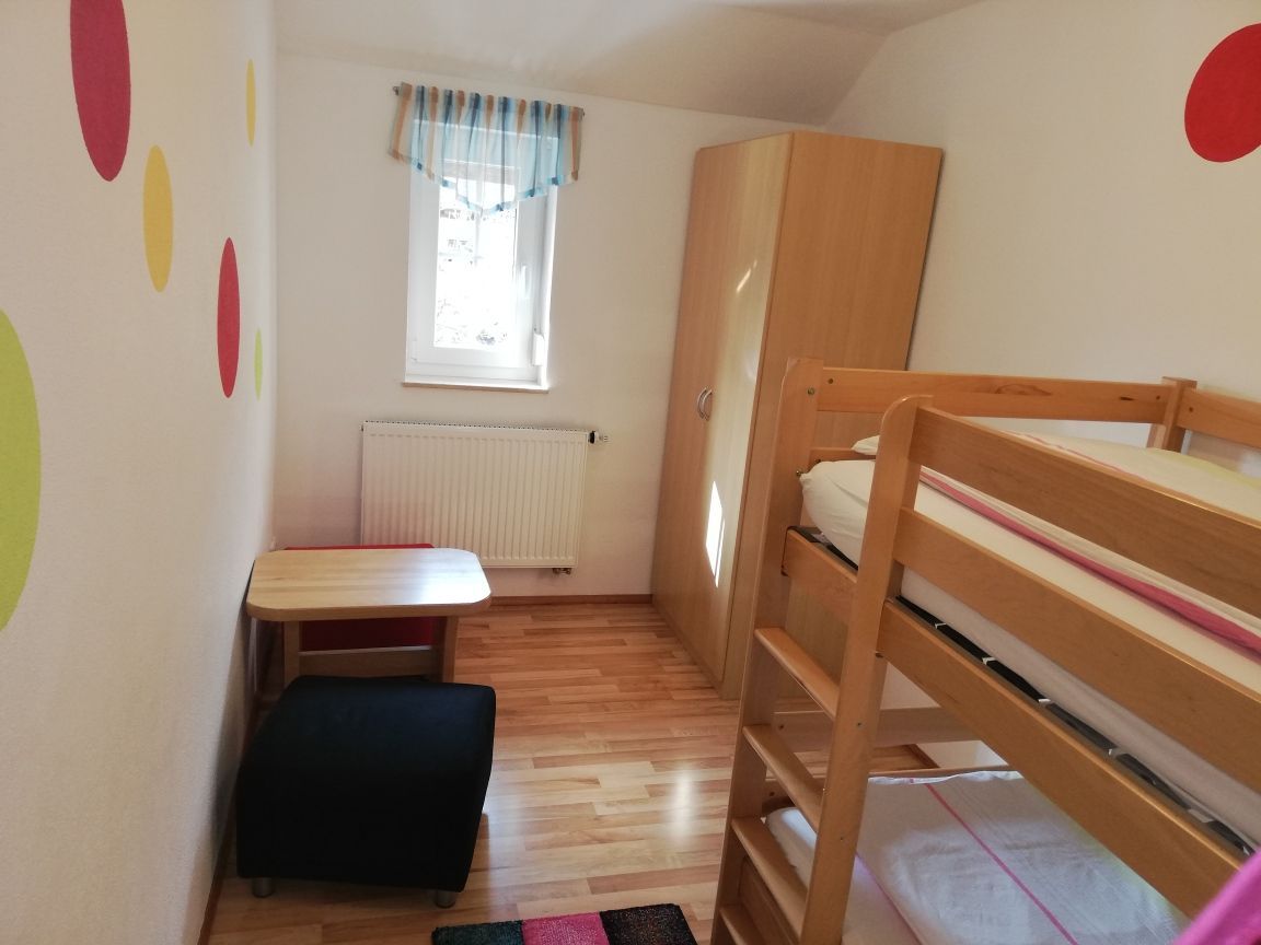 Die familienfreundliche Wohnung mit Südbalkon hat ein Schlafzimmer mit Doppelbett, ein Schlafzimmer mit Stockbett, eine große Wohnküche mit Schlafsofa und gut ausgestatteter Küche und ein Badezimmer mit Dusche. Auf Wunsch stellen wir ihne gerne ein Kinderbett und einen Hochstuhl kostenfrei zur Verfügung. Der Garten bietet viele Spiel- und Entspannungsmöglichkeiten.