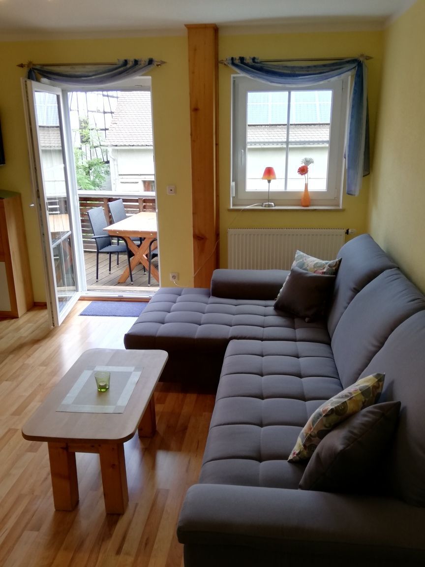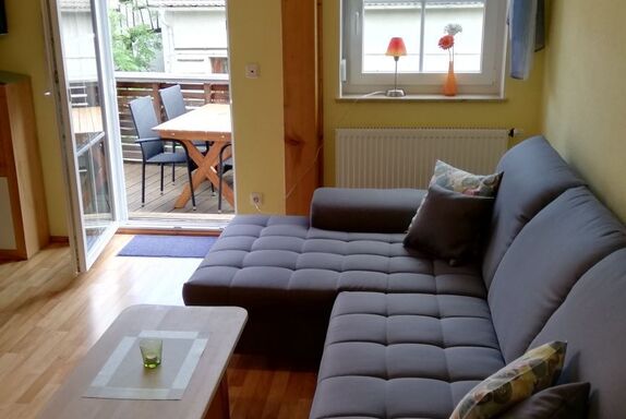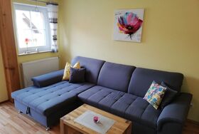 Die modern und gemütlich eingerichtete Wohnung hat ein Schlafzimmer mit Doppelbett, eine gut ausgestattete Wohnküche mit Balkon und Schlafsofa und ein Badezimmer mit Dusche. Der Garten hat einen Grillplatz und bietet viele Spiel- und Entspannungsmöglichkeiten.