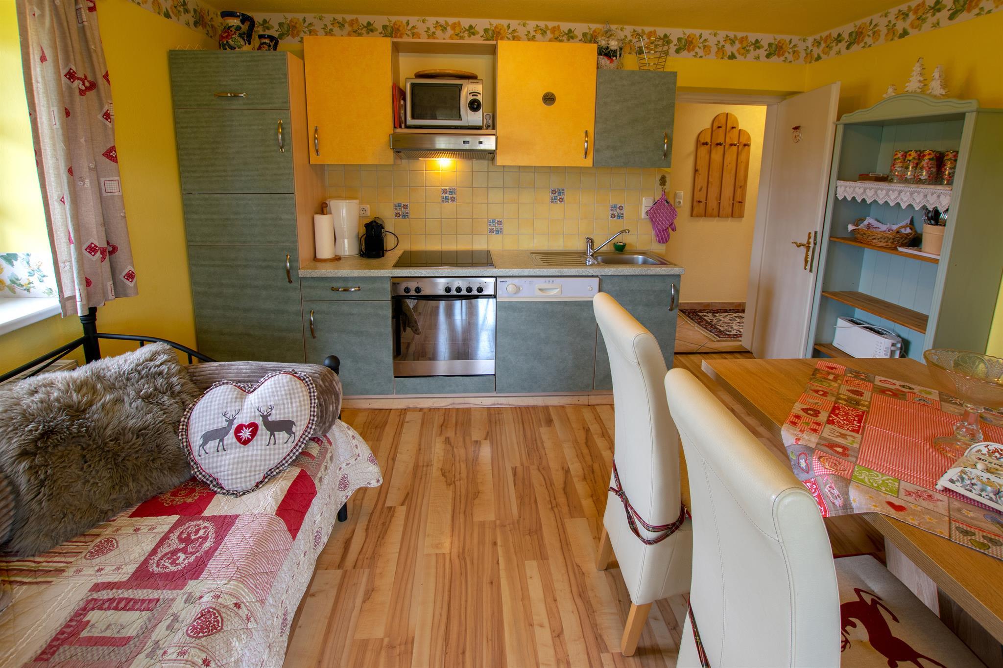 Das sonnige und ruhig gelegene 3-Zimmer-Appartement Kaiserblick 2 im Nebenhaus eignet sich für 2-5 Personen und verfügt über eine gemütliche Wohnküche mit einmaliger Aussicht und zwei Schlafzimmer mit Doppelbetten. Der große dreiseitige Balkon lädt ein, den Wilden Kaiser in der Abendsonne zu bestaunen.