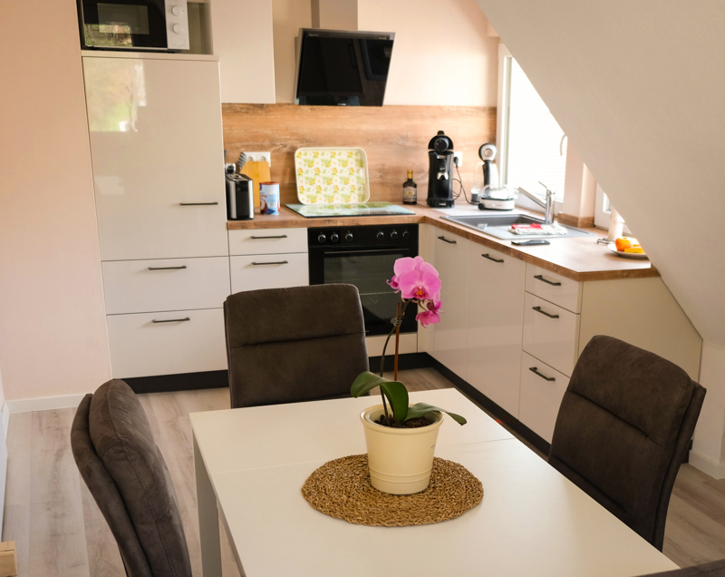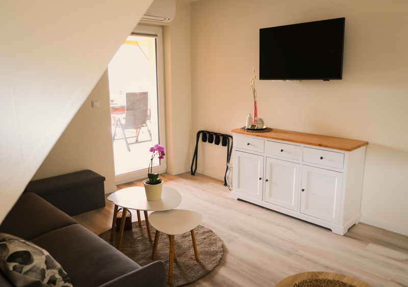 Unsere kernsanierte Ferienwohnung mit 45m² Wohnfläche bietet Platz für 1-4 Personen. Das Highlight der Ferienwohnung ist die 35 m² große Dachterasse mit Talblick auf den Spessart und Odenwald sowie auf das Kloster Engelberg. Das Appartment verfügt über 1 Schlafzimmer mit einem super bequemen Doppelbett, und ein gemütliches Wohnzimmer mit ebenbürtigem Schlafsofa mit extra Komfortmatratzen jeweils mit einem high end Smart TV mit Satelitenfernsehen und Zugang zur Dachterasse. Die komplett ausgestattete Wohnküche mit Geschirrspüler, Kühlschrank inkl. Gefrierfach, Herd, Backofen, Mikrowelle, Wasserkocher, Eierkocher, Toaster und Kaffeemaschine lässt keine Wünsche offen. Das geräumige Badezimmer mit ebenerdiger Rainshower, großem Spiegel, Fön und Handtuchtrockner rundet das Gesamtbild ab. Zum Reinigen Ihrer Kleidung stehen eine Waschmaschine und ein Trockner im Haus zur Verfügung. Vor allem im Sommer können Sie entspannte Grillabende in unserem Garten verbringen. Ein Kinderbett und ein Hochstuhl stellen wir bei Bedarf gerne zur Verfügung. Das WLAN und die Parkplätze vor dem Haus können Sie kostenfrei nutzen.