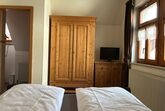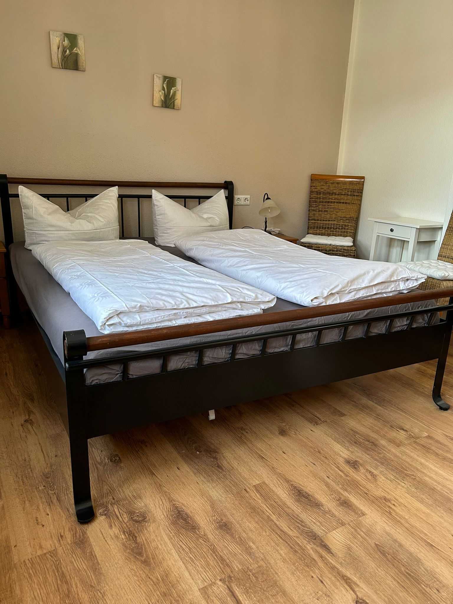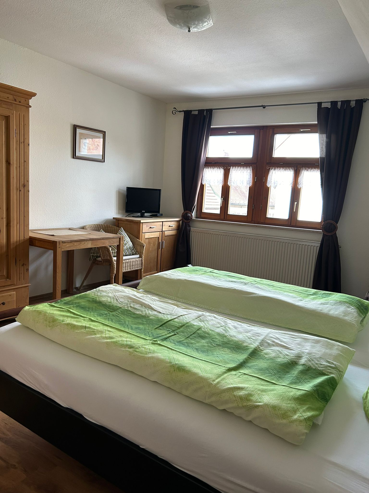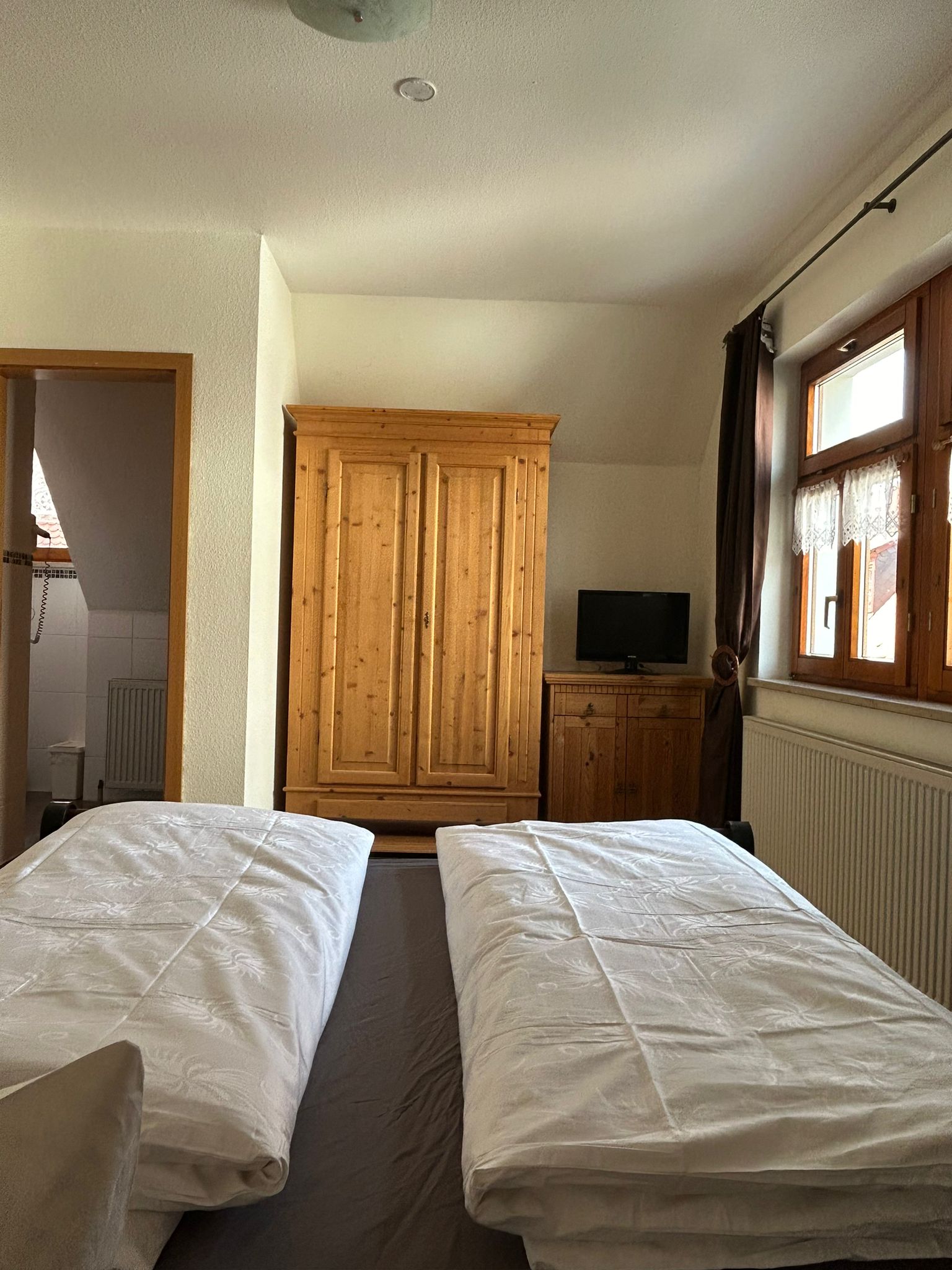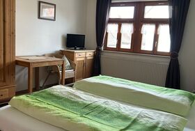 Jedes Zimmer ist ausgestattet mit einem Doppelbett, Kleiderschrank, Tisch und Stühle, Bad/Dusche und WC, Föhn, TV und Wlan.