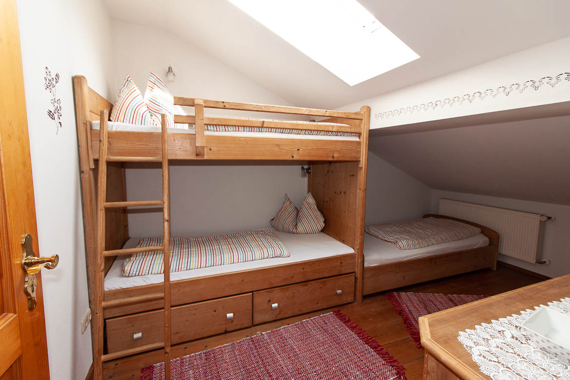 Die mit 4 Sternen klassifizierte Ferienwohnung ist mit ca. 55 qm unsere größte Ferienwohnung. In der Ferienwohnung befindet sich eine mit einer Spülmaschine ausgestatteten Wohnküche. In einem Schlafzimmer befindet sich ein Doppelbett und in dem zweiten Schlafzimmer ist ein Stockbett und ein Einzelbett vorhanden. Die Wohnung ist für 5 Personen geeignet.