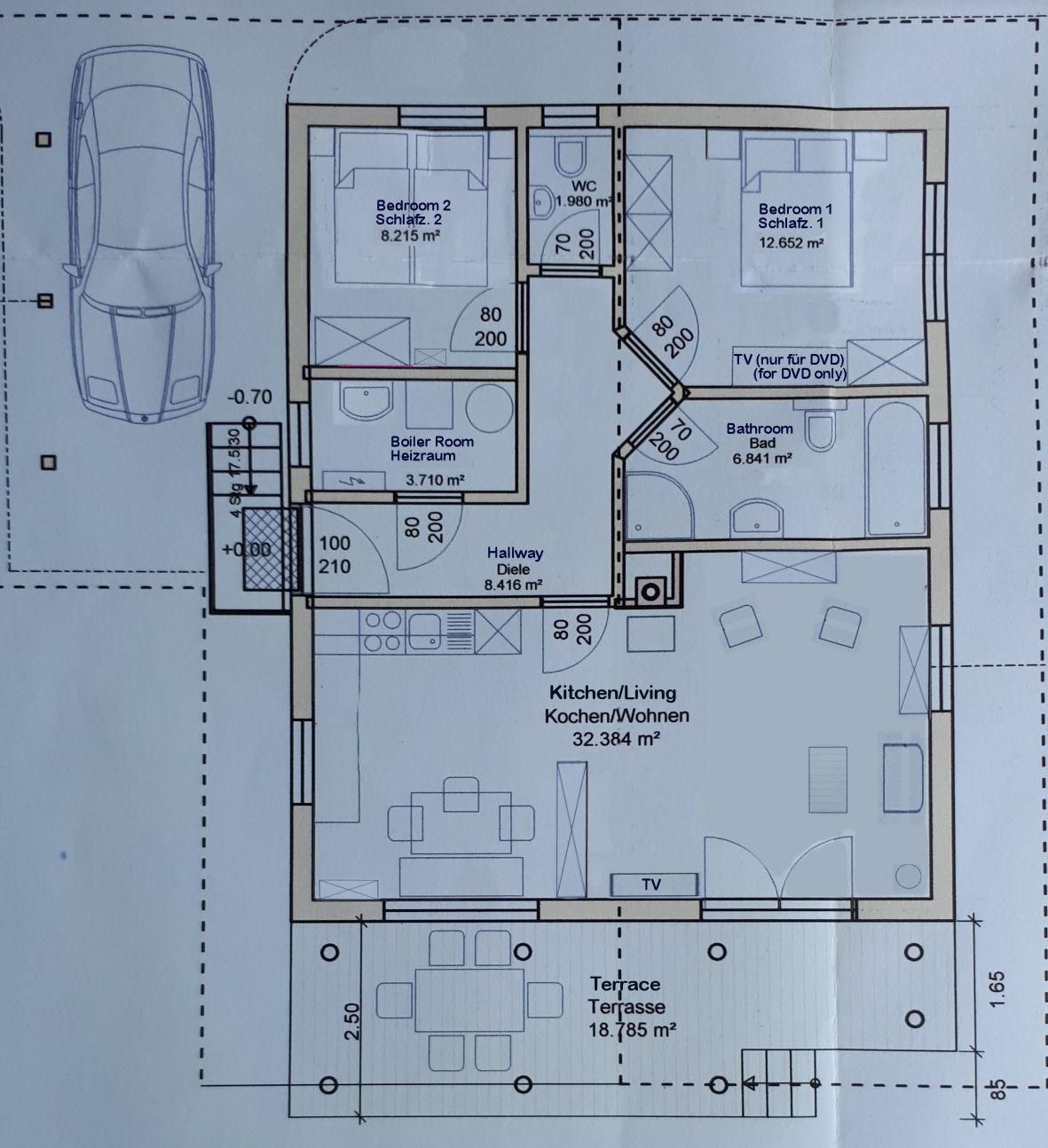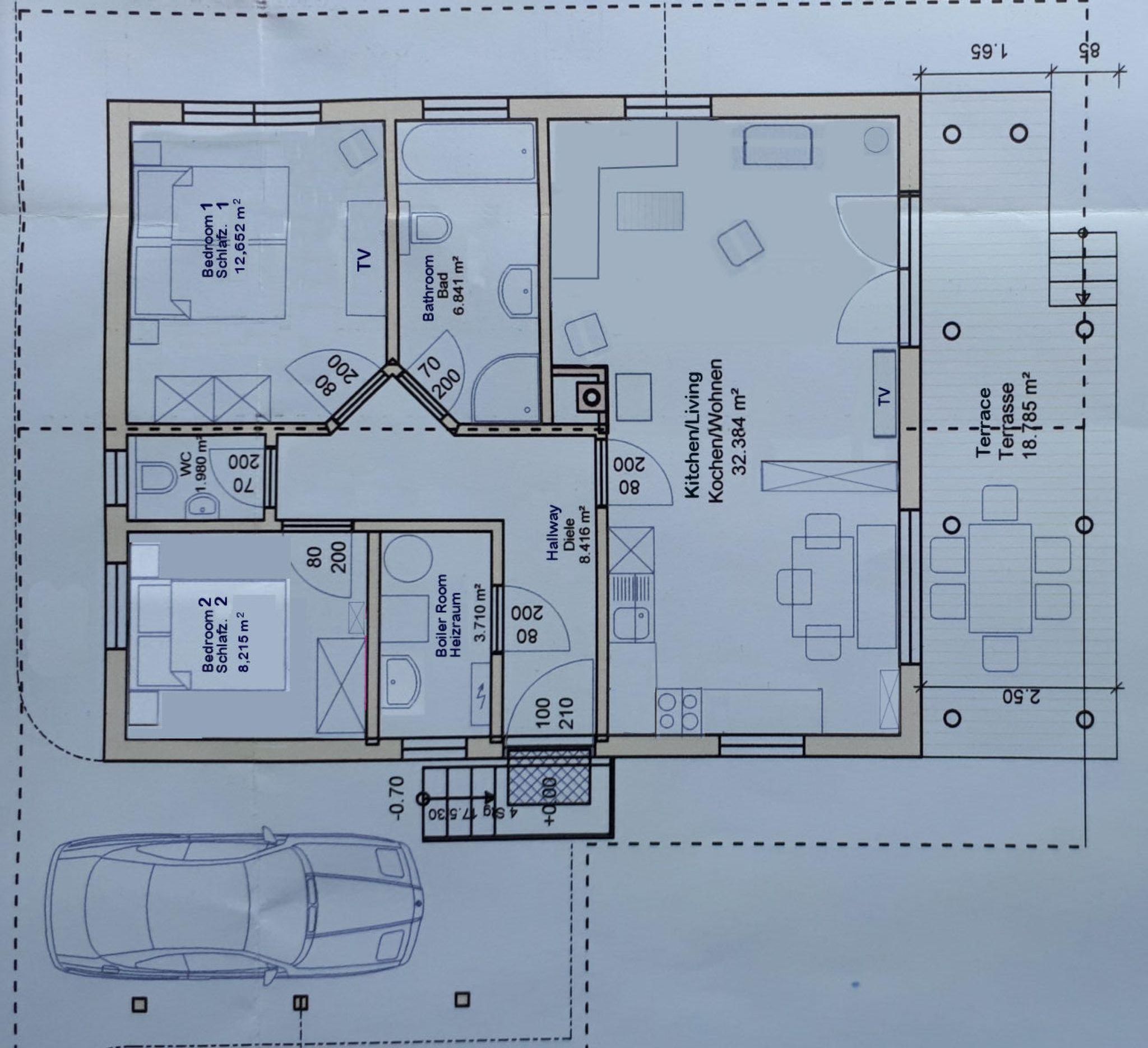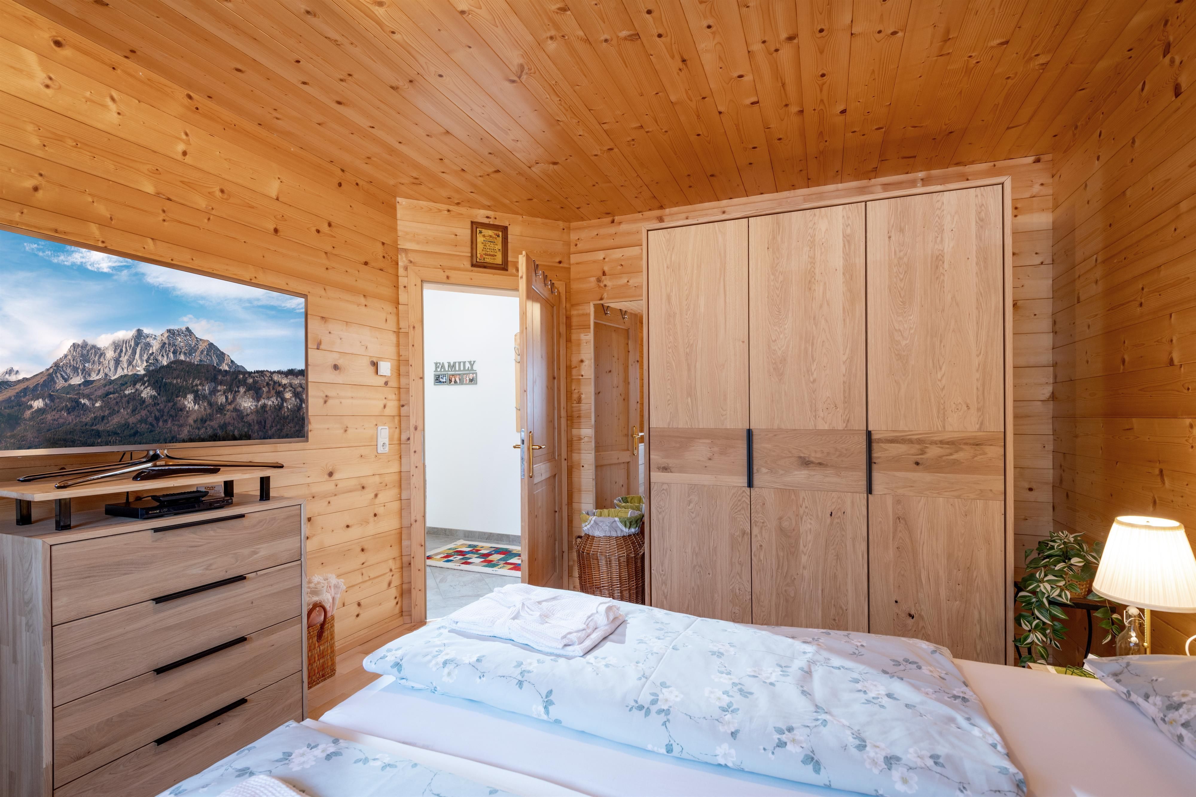 Eure Reise ins Glück beginnt hier! In unserem komplett aus Holz erbauten Chalet bieten wir euch auf 74 m² die perfekte Atmosphere für einen gemütlichen und gelungenen Ferienaufenthalt. In 2 Schlafzimmern finden bis zu 4 Personen bequem Platz. Im gemütlichen Wohnzimmer könnt ihr nach einem erlebnisreichen Tag entspannen. Die komplett ausgestattete und moderne Küche mit Esstisch ist im Wohnbereich integriert. Das Badezimmer verfügt über eine Badewanne, Dusche und WC. Weiters gibt es ein zweites, abgetrenntes WC. Ebenfalls kostenlos zur Verfügung stehen eine Waschmaschine und ein Wäschetrockner.