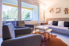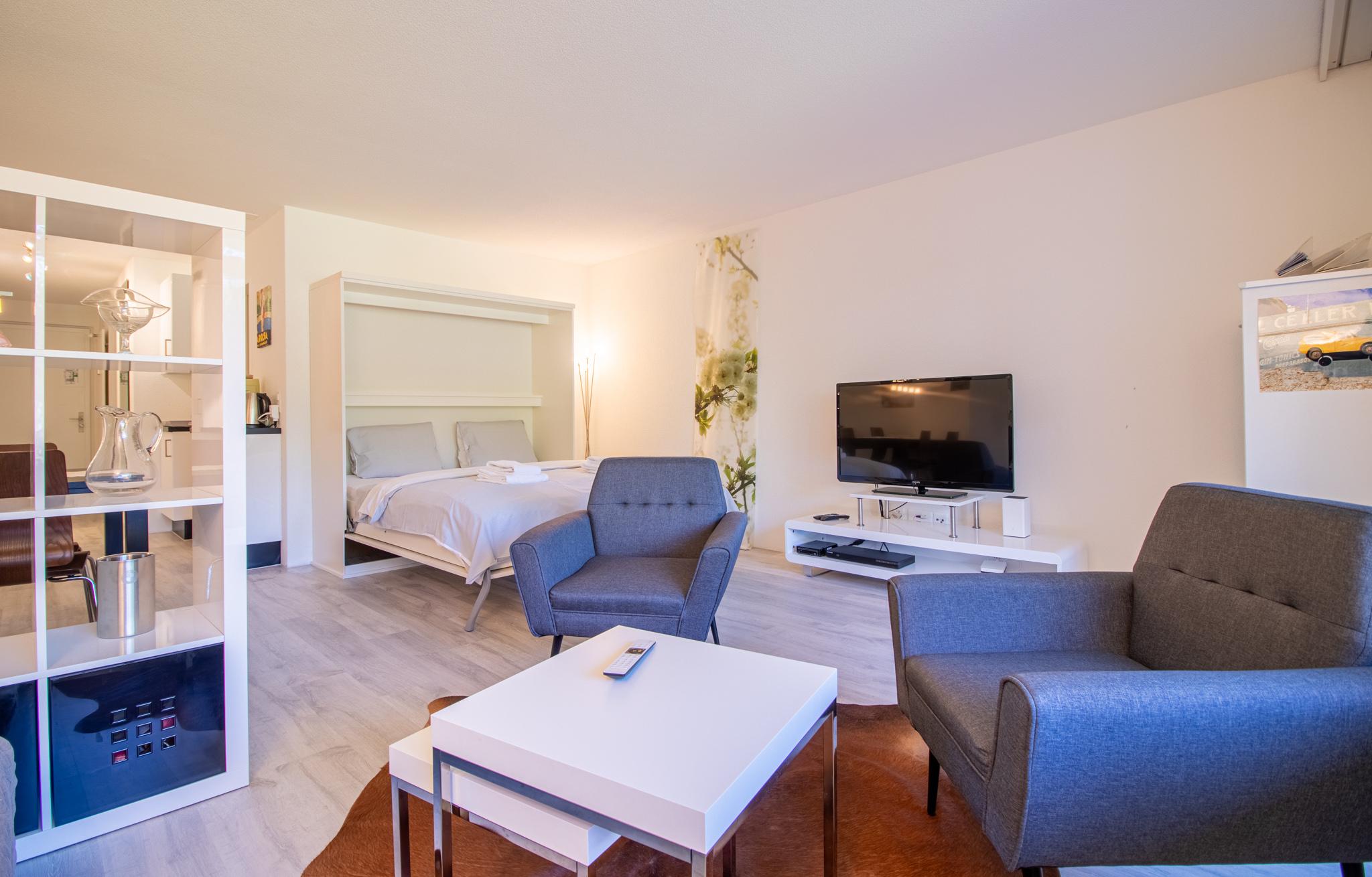 Geräumiges Wohn- und Esszimmer mit 1 Schrankbett (für je 2 Personen)