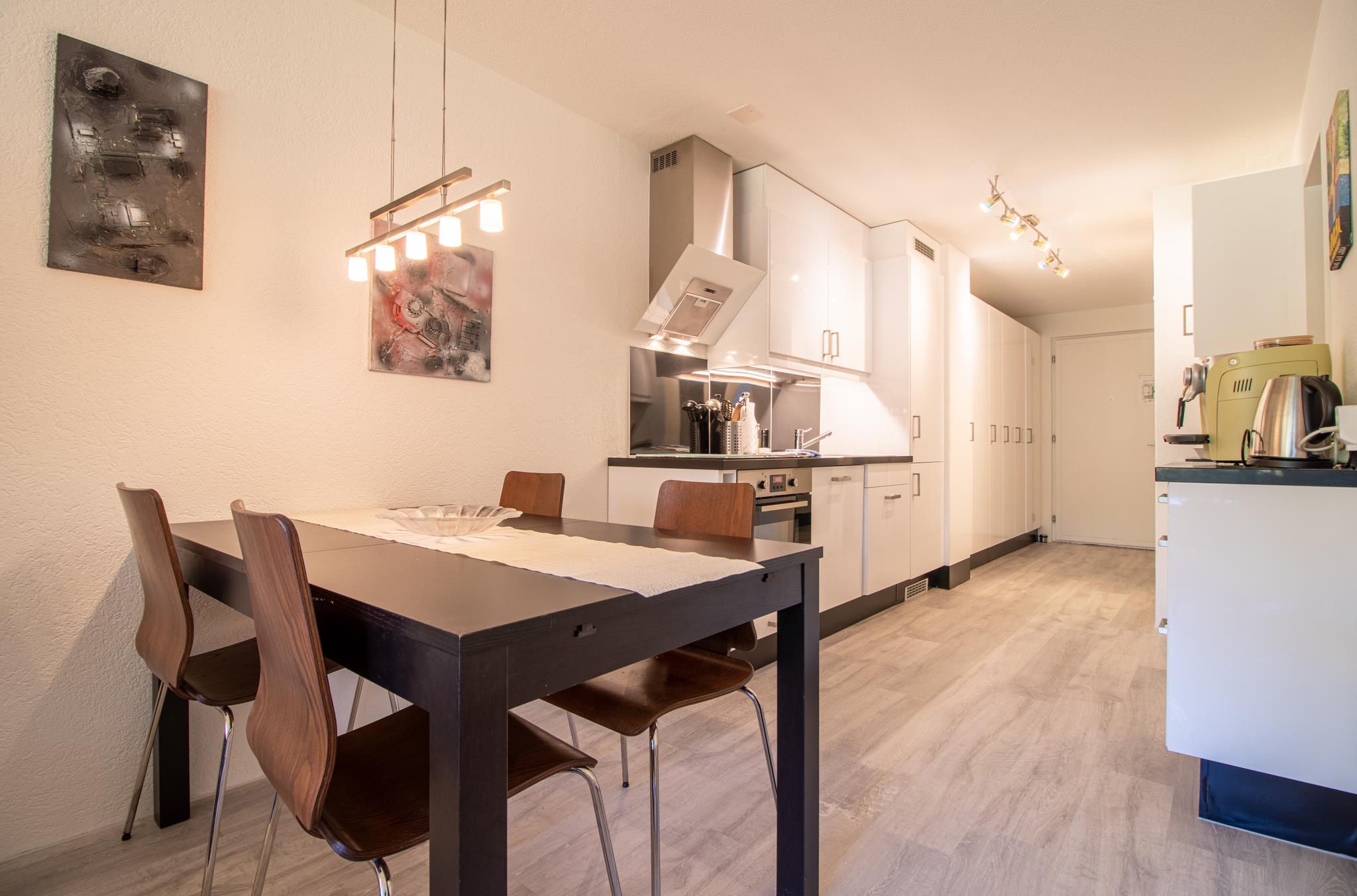 Die Wohnung befindet sich im Gebäude Rothornblick in ruhiger und sonniger Lage. Die 2 Zimmerwohnung verfügt über ein Schlafzimmer mit Doppelbett und ein Schrankbett für 2 Personen, im Wohnzimmer. Die offene Küche ist vollausgestattet und die Essecke liegt direkt am geräumigen Wohnzimmer. Der Balkon liegt nach Süden und bietet ein großartiges Bergpanorama. Das Gebäude verfügt über einen Skikeller sowie einen zu der Wohnung zugehörigen Tiefgaragenstellplatz.