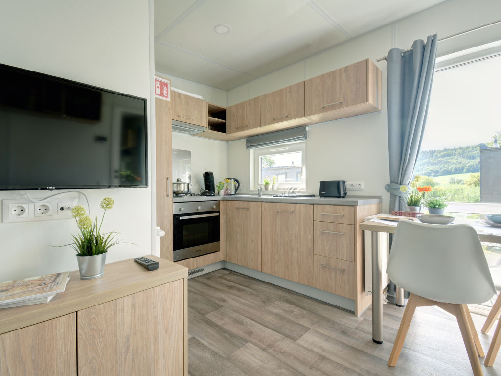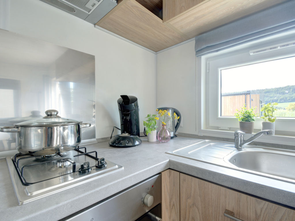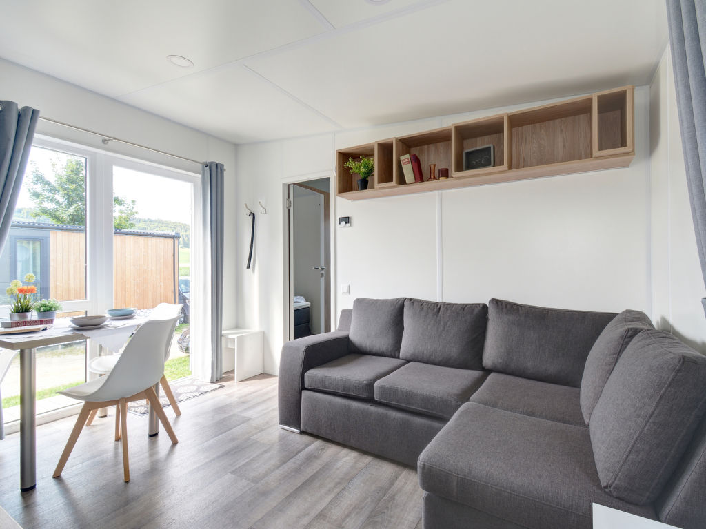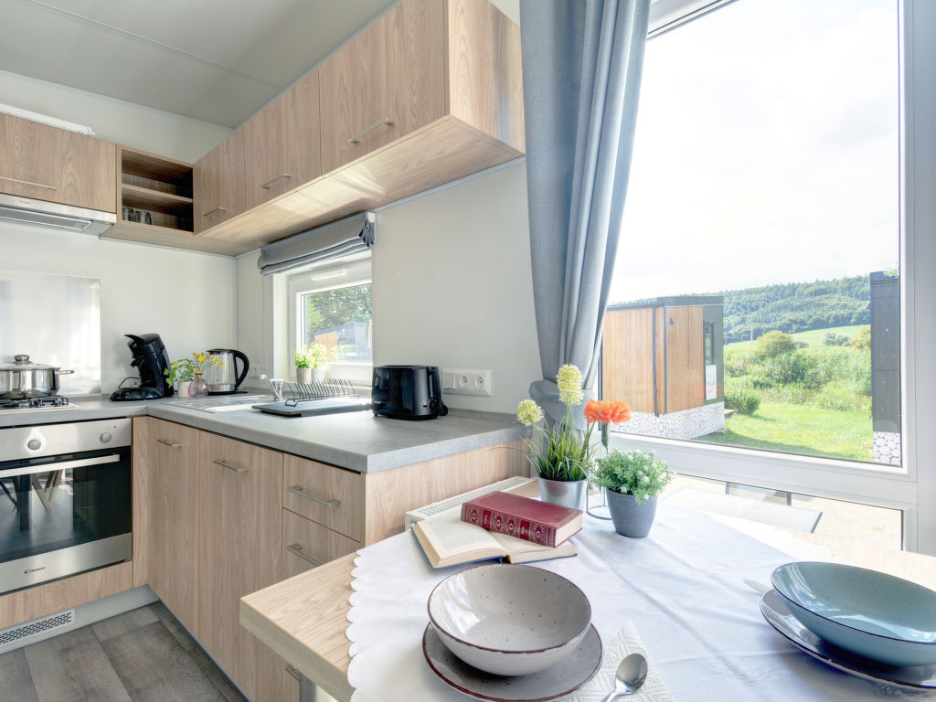 Tiny Haus Beilngries, 2-Zimmer-Mobilheim 25 m2. Objekt geeignet für 2 Erwachsene + 2 Kinder. Gemütlich eingerichtet: Wohn-/Schlafzimmer mit 1 Diwanbett (120 cm, Länge 170 cm), Sat-TV. 1 Zimmer mit 1 franz. Bett (140 cm, Länge 200 cm). Offene Küche (Backofen, Gasherd, 2 Flammen, Wasserkocher, elektrische Kaffeemaschine). Dusche/WC. G-Heizung. Kleine Terrasse. Terrassenmöbel. Parkplatz in 50 m. Bitte beachten: Nichtraucher-Haus. Maximal 1 Haustier/Hund erlaubt.