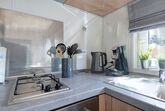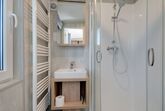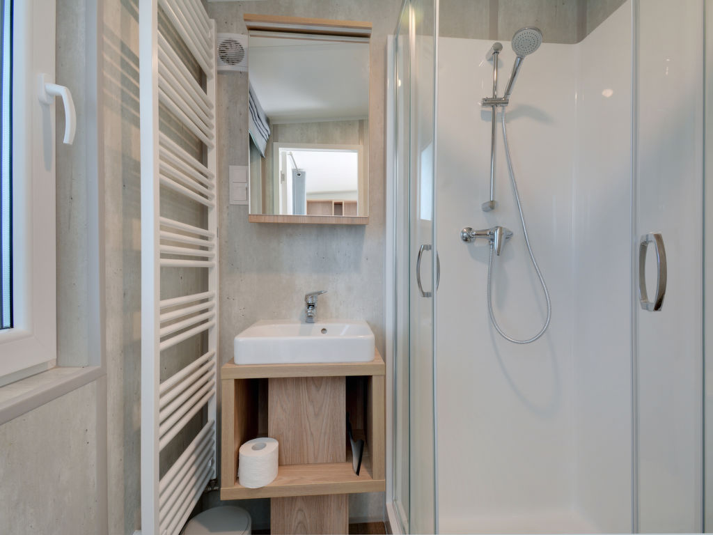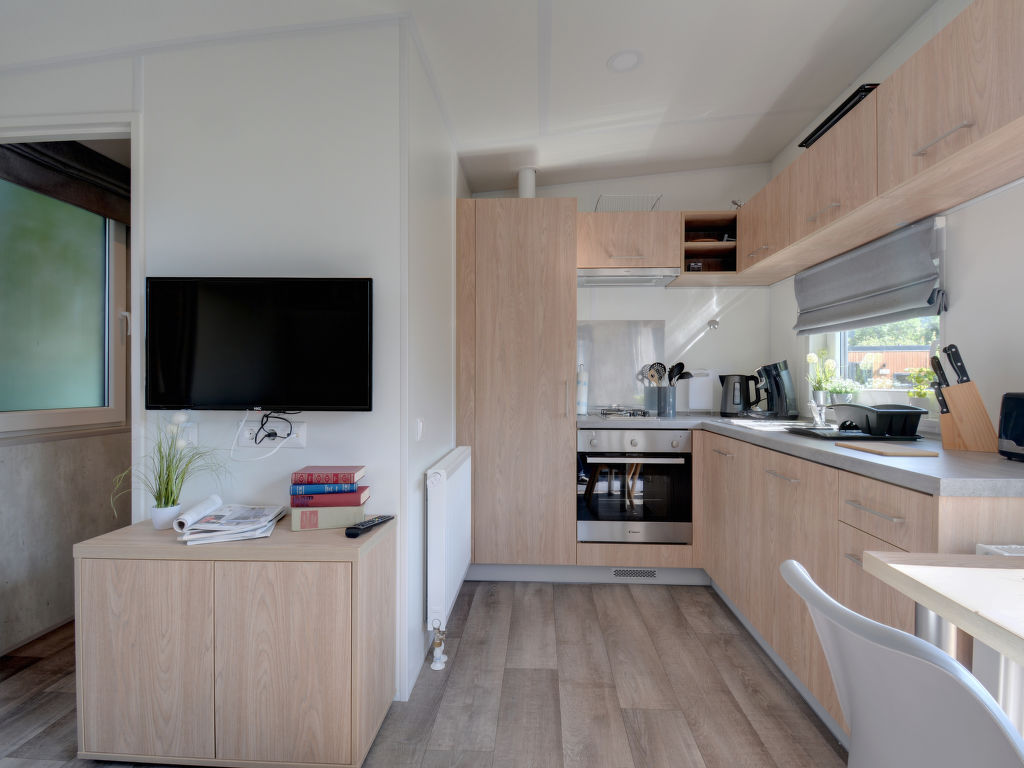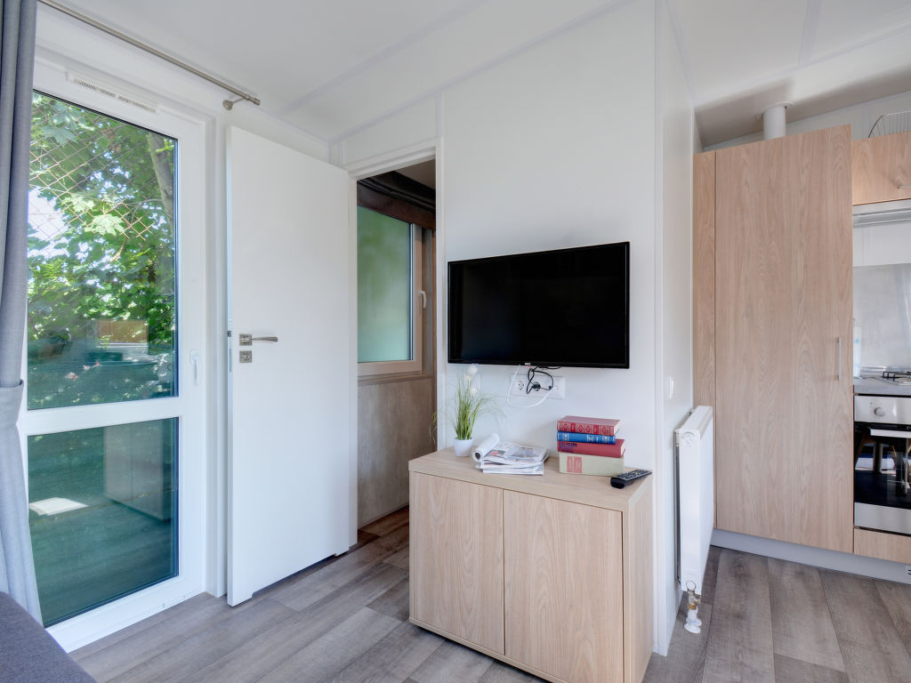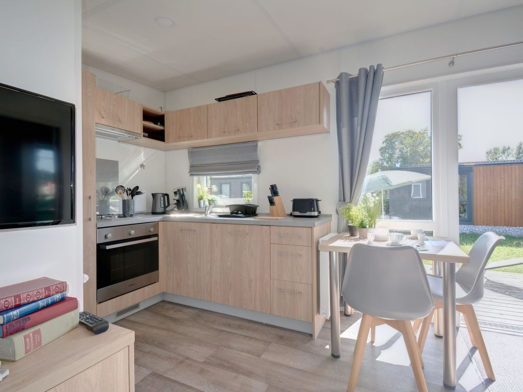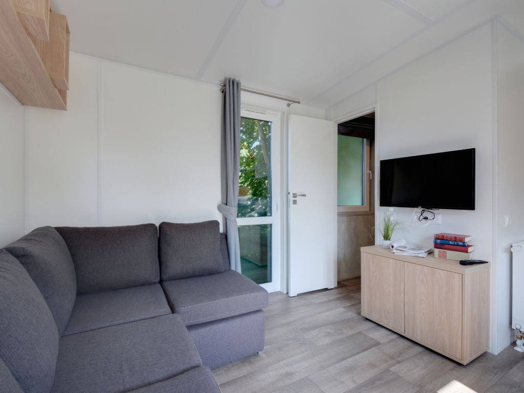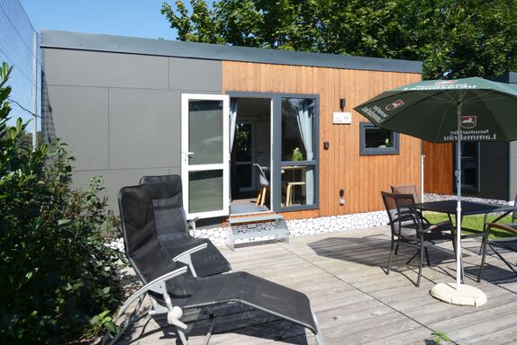 Tiny Haus Marion, 2-Zimmer-Mobilheim 25 m2. Objekt geeignet für 2 Erwachsene + 2 Kinder. Gemütlich eingerichtet: Wohn-/Schlafzimmer mit 1 Diwanbett (120 cm, Länge 170 cm), Sat-TV. 1 Zimmer mit 1 franz. Bett (140 cm, Länge 200 cm). Offene Küche (Backofen, Gasherd, 2 Flammen, Wasserkocher, elektrische Kaffeemaschine). Dusche/WC. G-Heizung. Terrasse 24 m2. Terrassenmöbel. Parkplatz in 50 m. Bitte beachten: Nichtraucher-Haus.