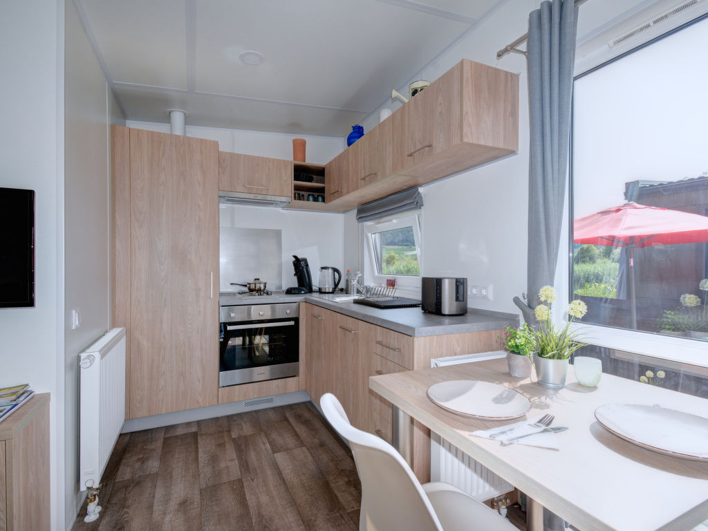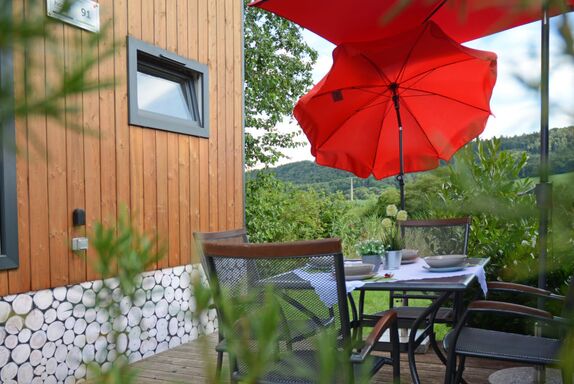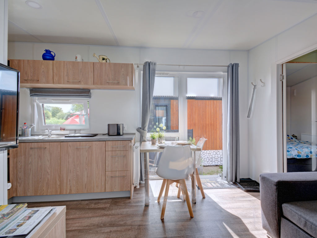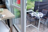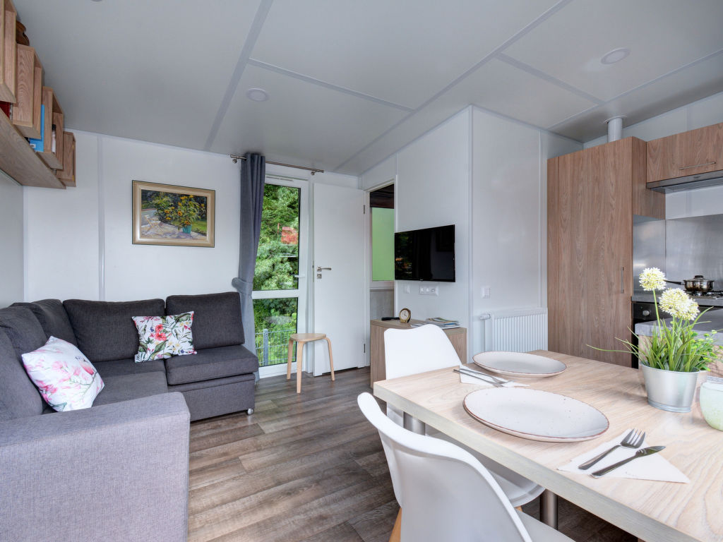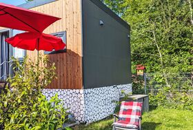 Tiny Haus Gabis Puppenkiste, 2-Zimmer-Mobilheim 25 m2. Objekt geeignet für 2 Erwachsene + 2 Kinder. Gemütlich eingerichtet: Wohn-/Schlafzimmer mit 1 Diwanbett (120 cm, Länge 170 cm), Sat-TV. 1 Zimmer mit 1 franz. Bett (140 cm, Länge 200 cm). Offene Küche (Backofen, Gasherd, 2 Flammen, Wasserkocher, elektrische Kaffeemaschine). Dusche/WC. G-Heizung. Kleine Terrasse. Terrassenmöbel. Parkplatz in 50 m. Bitte beachten: Nichtraucher-Haus. Maximal 1 Haustier/Hund erlaubt.