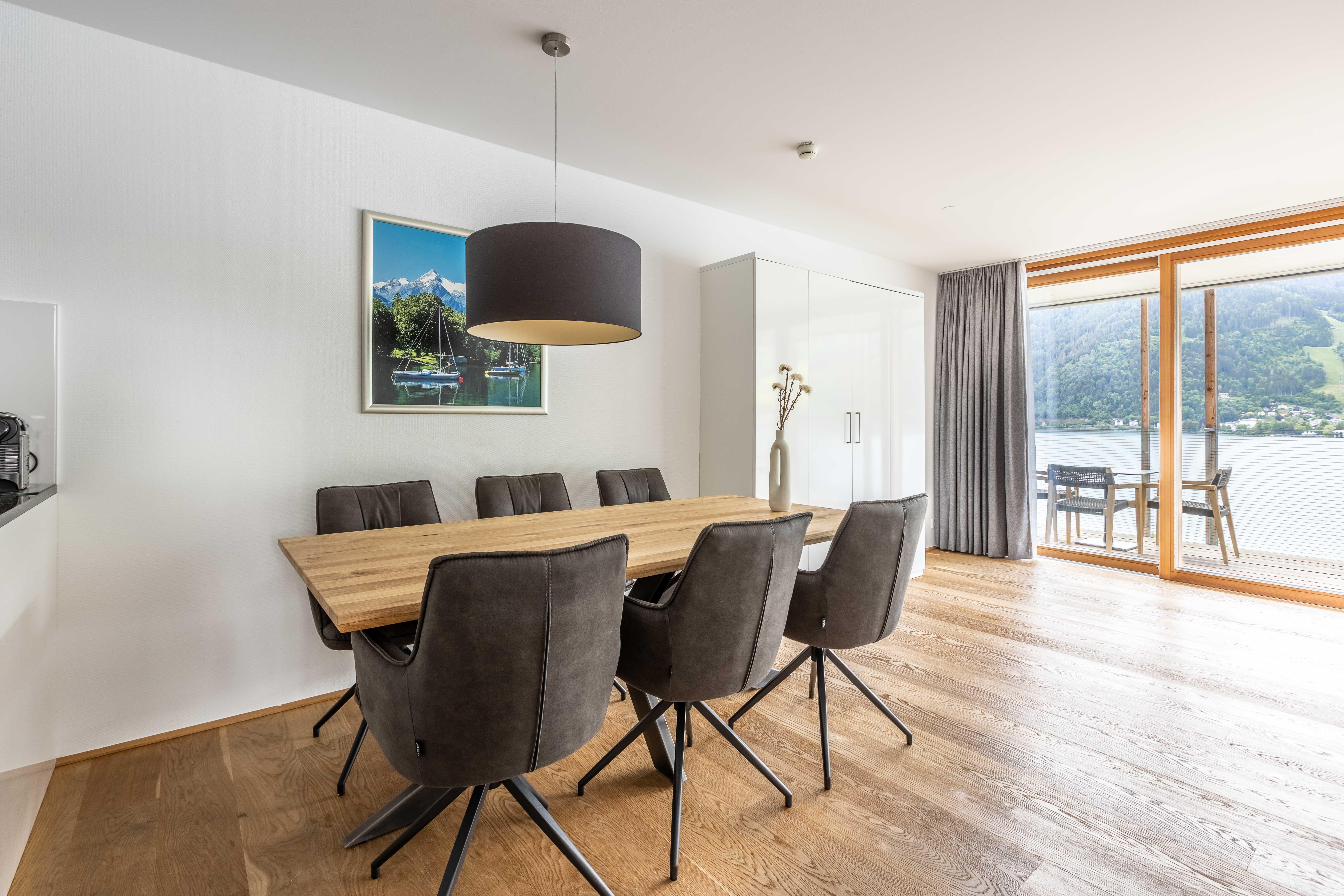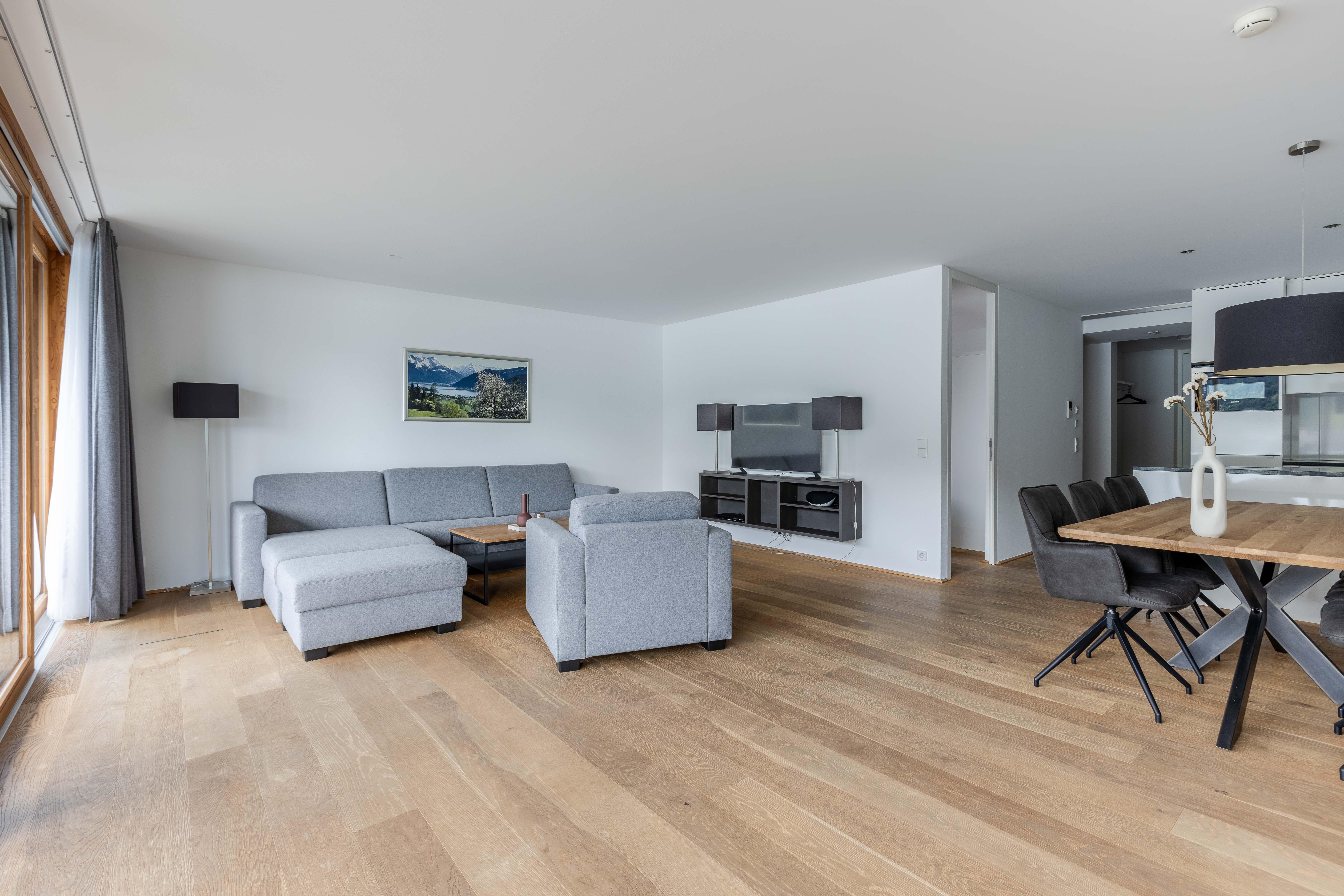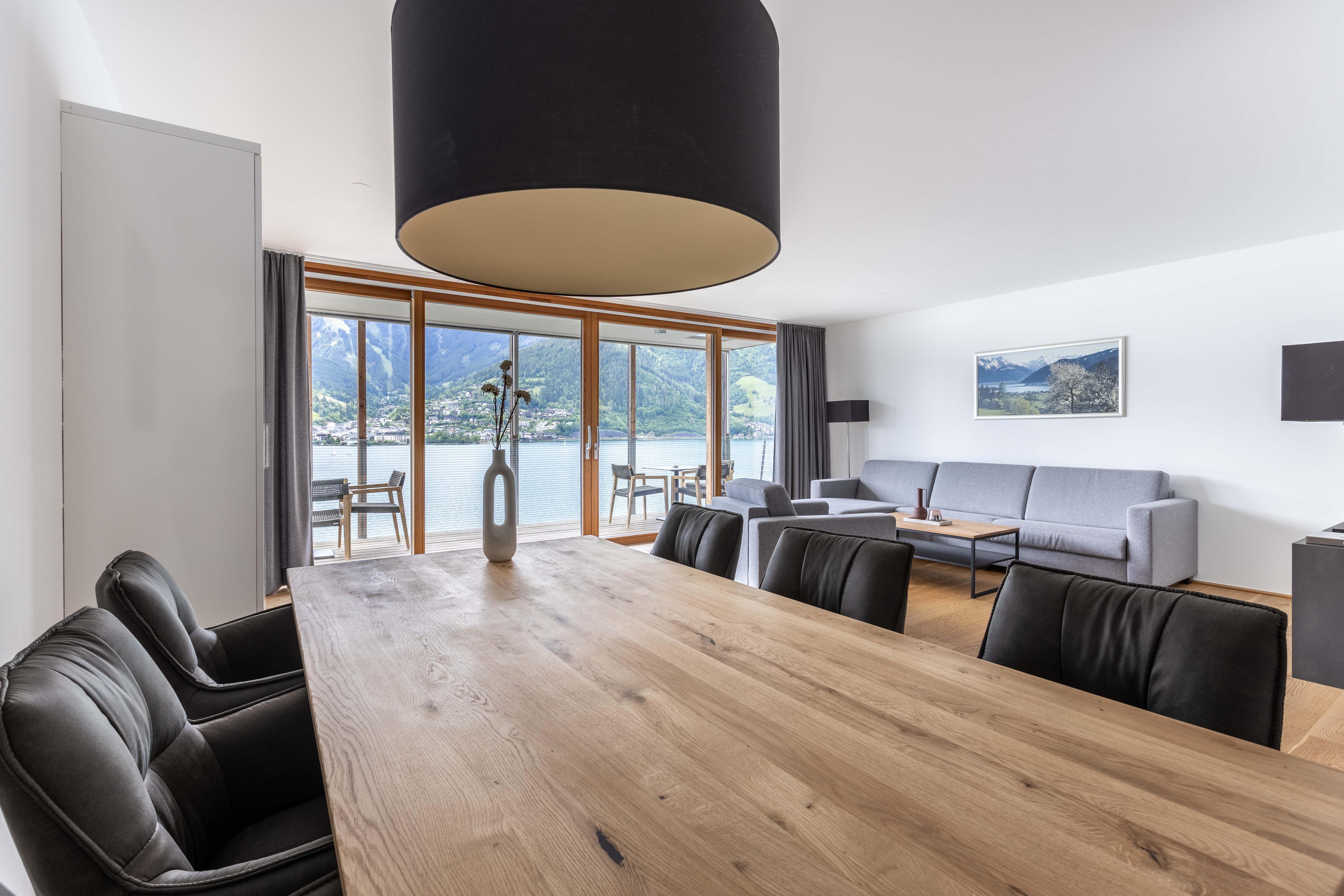 Herzlich willkommen in den Bellevue Residences! Wir bieten geräumige Appartements und Suiten mit jeweils zwei Schlafzimmern, Balkon und/oder Terrasse. Das Highlight ist der atemberaubende Blick auf den See und die umliegenden Berge. Hochwertige Materialien, stilvolles Design und großzügige Räume laden zum Verweilen ein. Zwei Saunen, ein eigener Parkplatz, ein beheizter Skikeller und eine Waschküche sind ebenfalls vorhanden. Außerdem bieten wir unseren Gästen eine geräumige, voll ausgestattete Küche und kostenloses WLAN. Freue dich auf einen unvergesslichen Aufenthalt in den Bellevue Residences!
