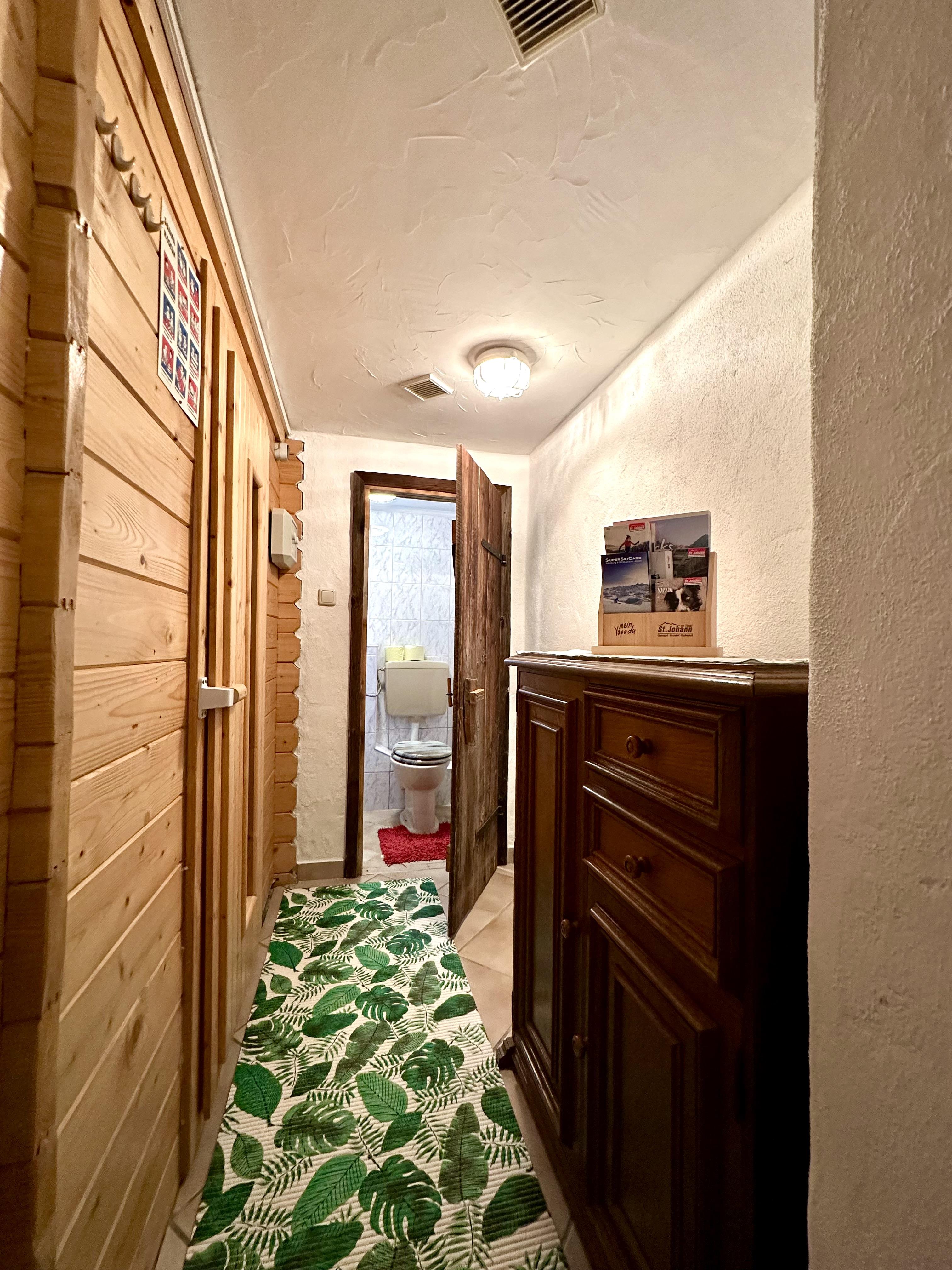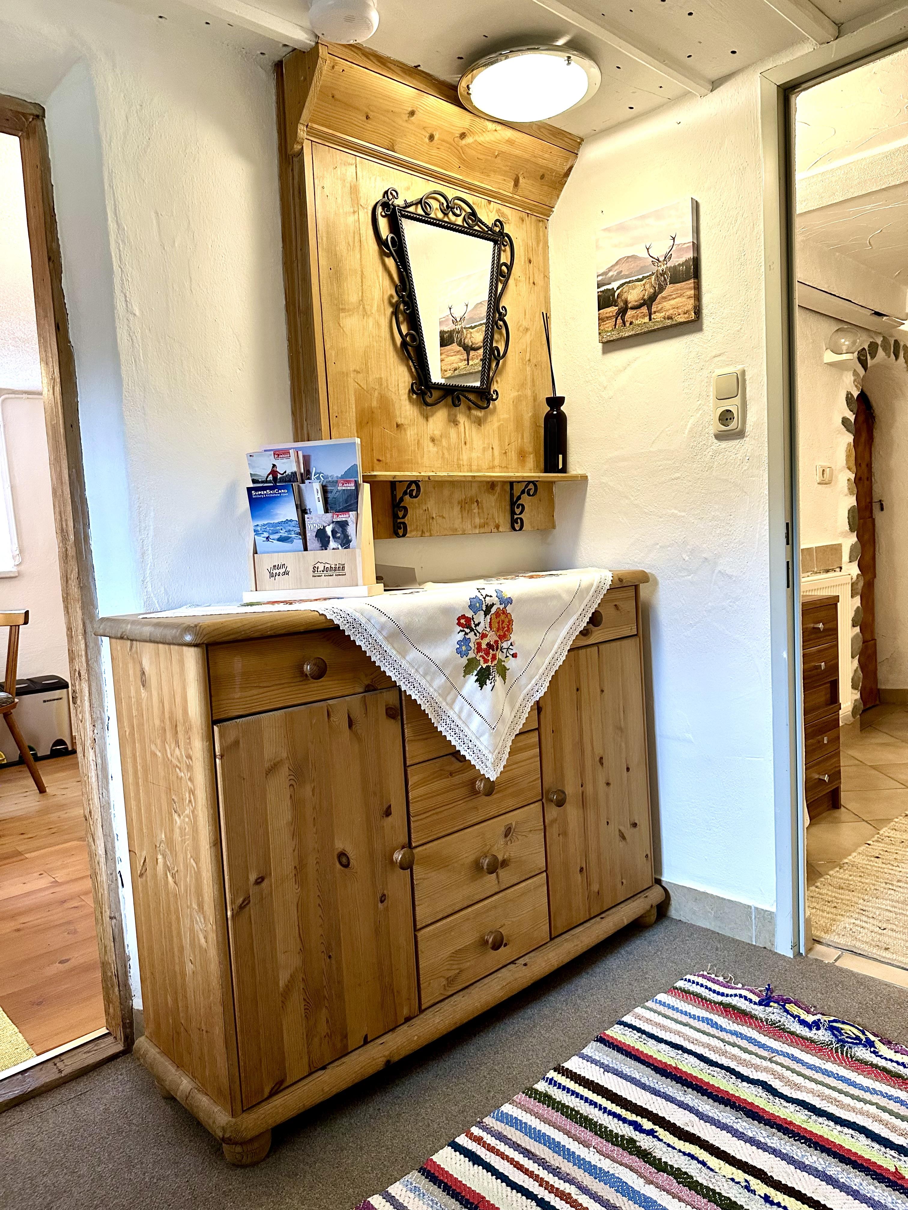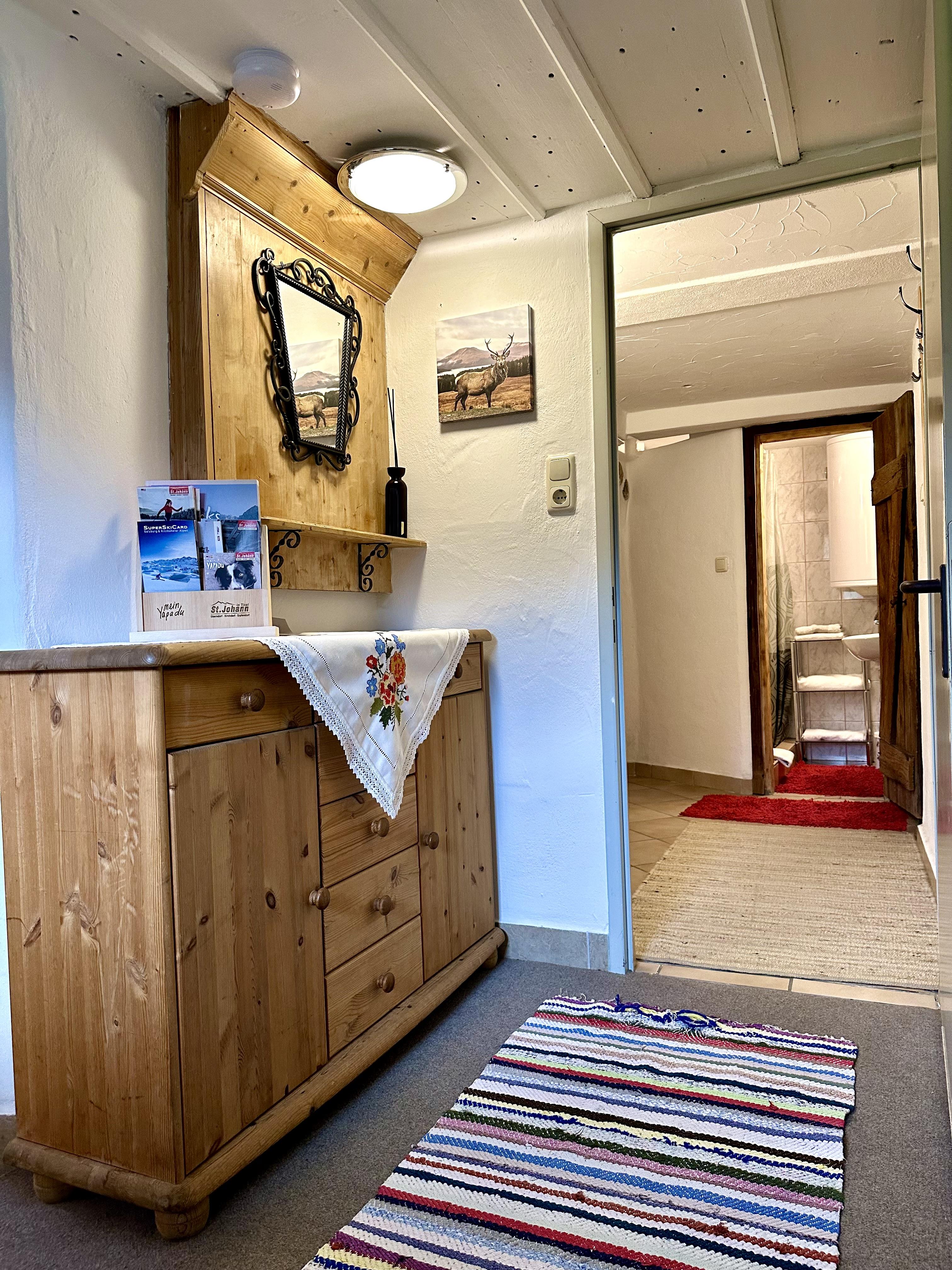 Das Appartement Sunnseit liegt im Nebenhaus von der Sunnseit Lodge. Die rustikale Wohnung auf ca. 40m² ist wie folgt eingeteilt: Vorraum, Küche mit Küchenzeile und Pelletofen, Schlafzimmer mit SAT-TV, Schrank und Doppelbett, Gang zum kleinen Badezimmer und zum WC. Das Appartement bietet einen ausgezeichneten Blick auf das Kitzbüheler Horn. Die Küchenzeile des Appartements ist wie folgt ausgestattet: Kühlschrank, Backofen, Mikrowelle, Filterkaffeemaschine, Herd mit 4 Platten, gemütliche Eckbank.