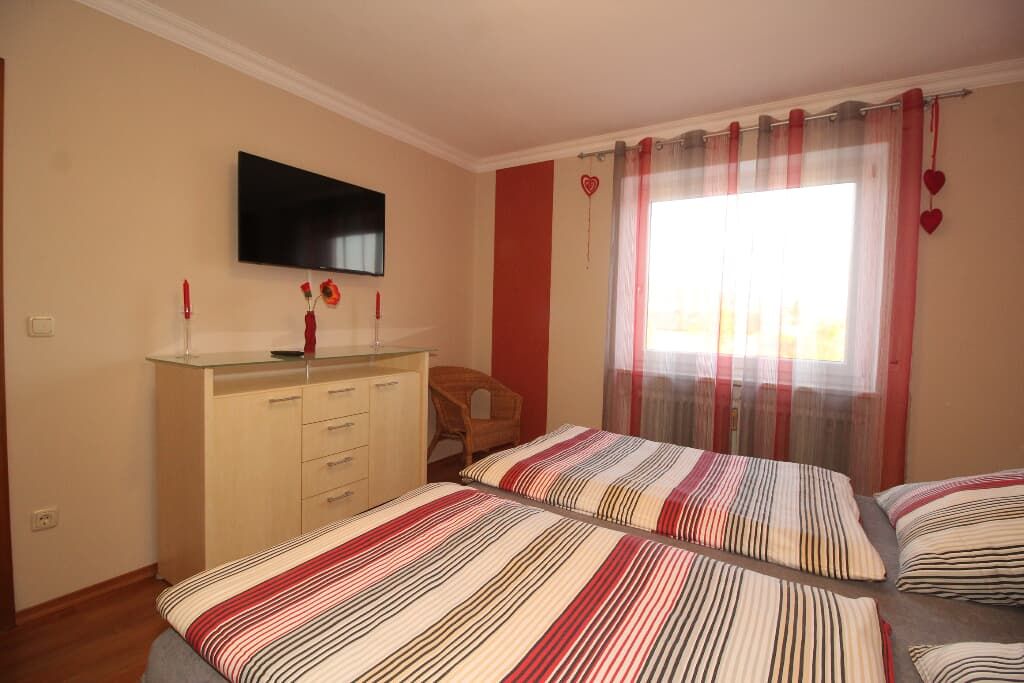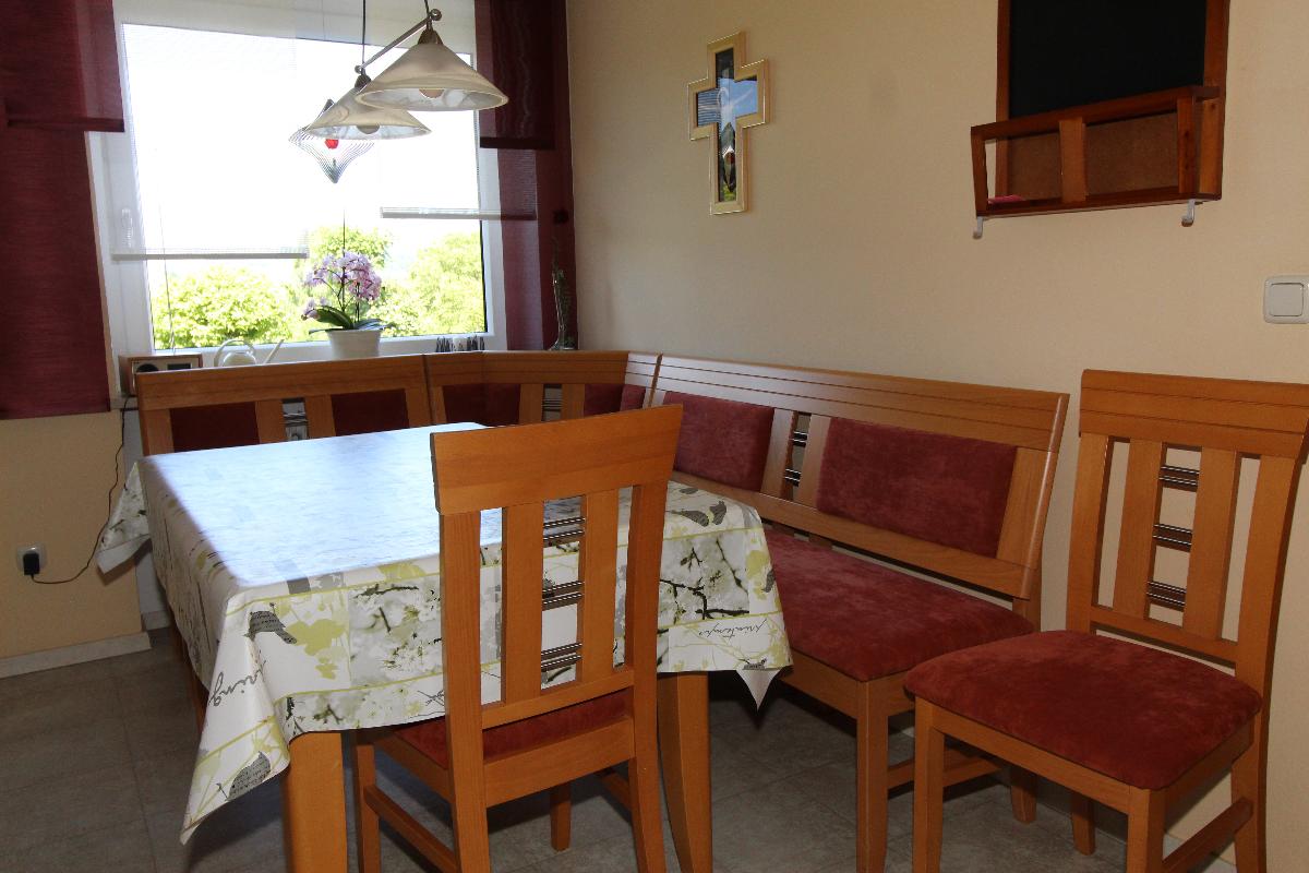 Die Ferienwohnung ist 94 Quadratmeter groß und bietet Platz für bis zu 4 Personen. Sie verfügt über zwei Schlafzimmer, dabei ist ein Schlafzimmer mit einem Doppelbett und das andere mit zwei Einzelbetten ausgestattet. Das Wohnzimmer verfügt über Couchgarnitur, Kaminofen, Telefon, Radio und Sat-TV. Die Wohnküche mit Sitzecke verfügt über eine Küchenzeile mit Backofen, Geschirrspüler, Geschirr, Mikrowelle, Kaffeemaschine, Wasserkocher. Das Badezimmer ist mit Badewanne, Dusche, Waschbecken, Fön und WC ausgestattet. Es steht Ihnen eine Terrasse zur Verfügung, von der aus Sie auch Gartenzugang haben