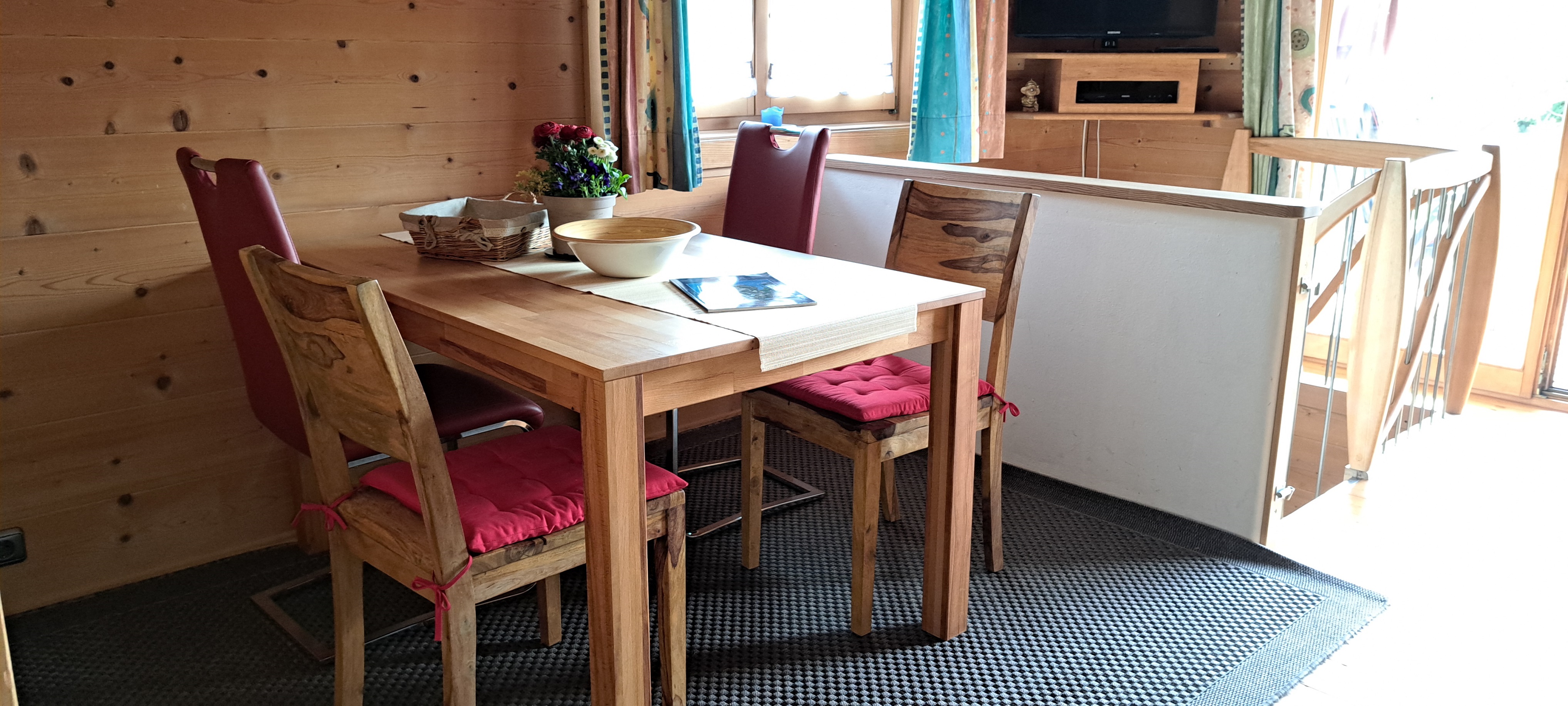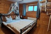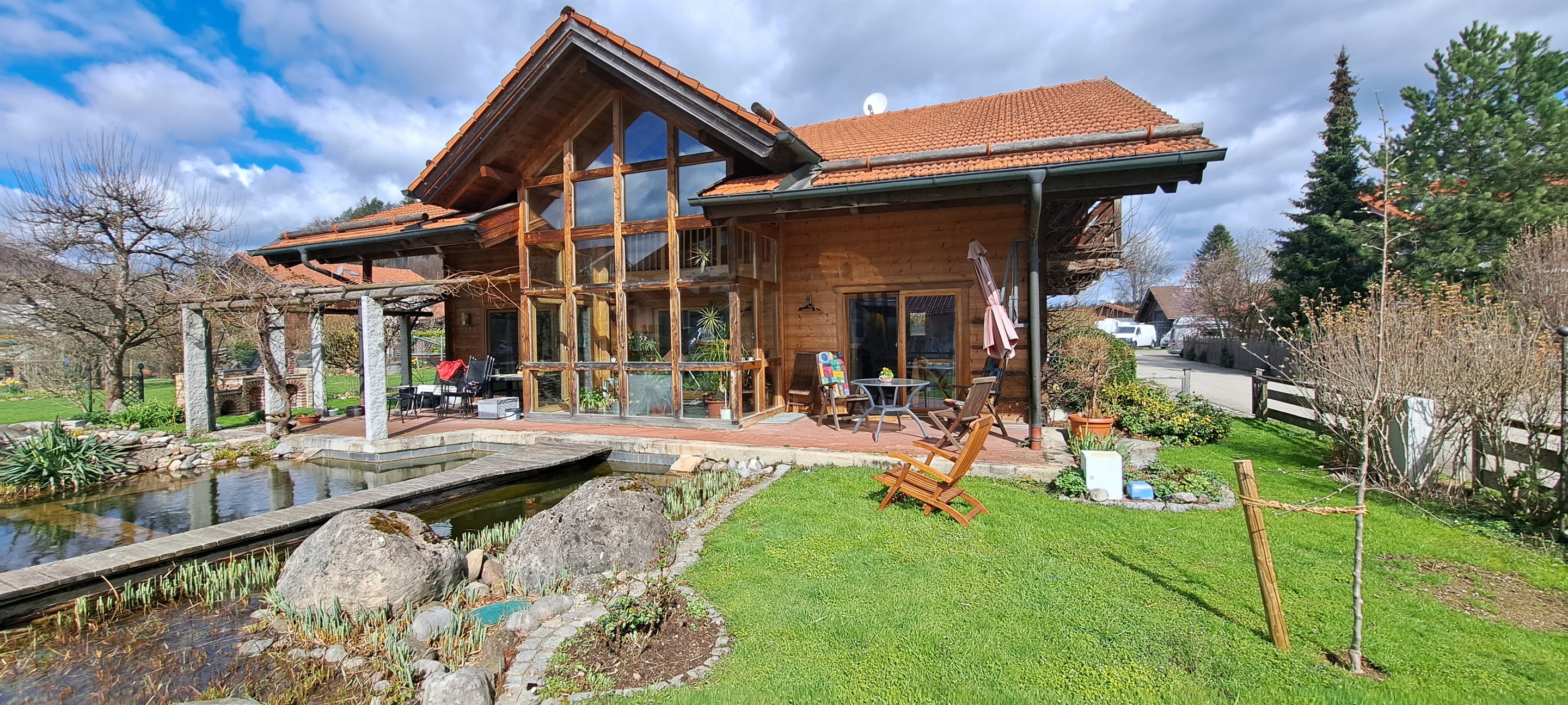 Ausstattung: 1 Schlafzimmer im Souterrain über Treppe erreichbar (Doppelbett) + 1 separates Kinderschlafzimmer (Etagenbett) im EG, Wohnraum mit moderner Küche (Spülmaschine), Bad inkl. Wickelauflage, TV, Internetanschluss, Liegewiese, Bettwäsche und Handtücher werden gestellt. W-Lan. Besonderheiten: Ökolog. Holzblockhaus (für Allergiker geeignet), 12 qm Südterrasse mit Teichblick, großer gepflegter Garten, in der Nähe Spielplatz, Bäcker und Reiterhof. Weitere Ansichten und Bilder zu unserer Ferienwohnung finden sie bei Youtube unter Holzblockhaus Bachham.