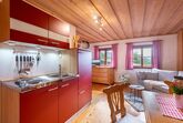 Die Küchenzeile ist voll eingerichtet (Geschirr, Gläser, Besteck,...)und mit folgenden Elektrogeräten ausgestattet. => Kühlschrank, Gefrierfach, zwei Herdplatten, Kaffeefiltermaschine, Toaster, Wasser-und Eierkocher.