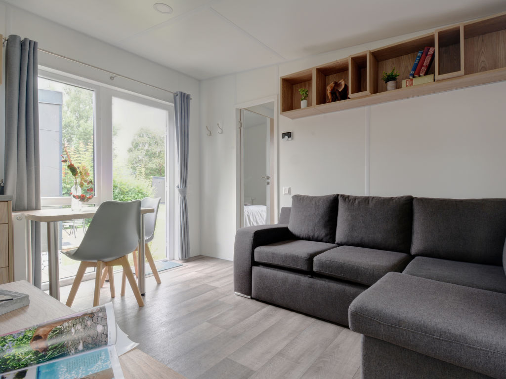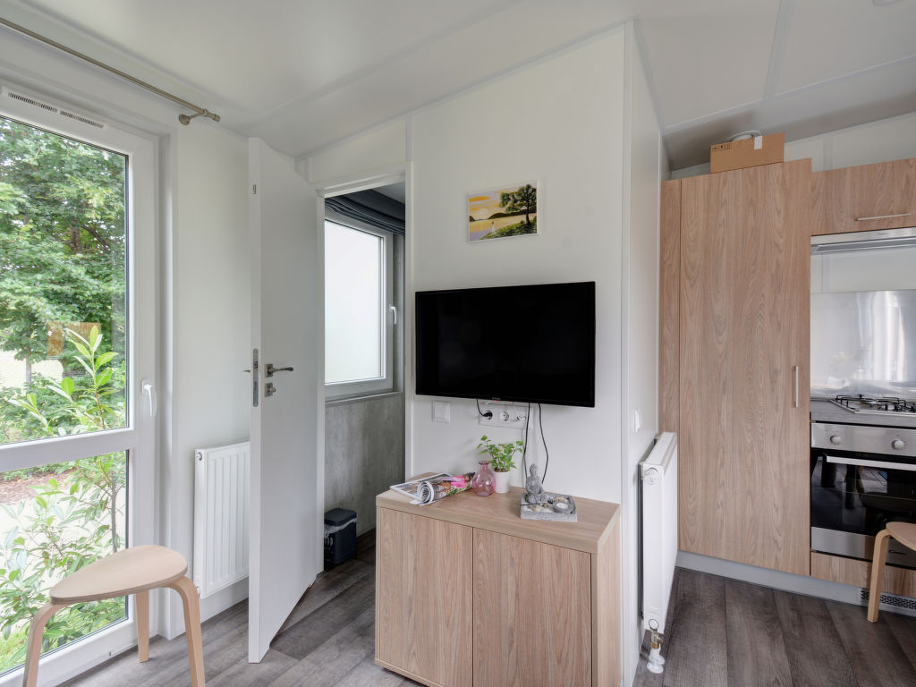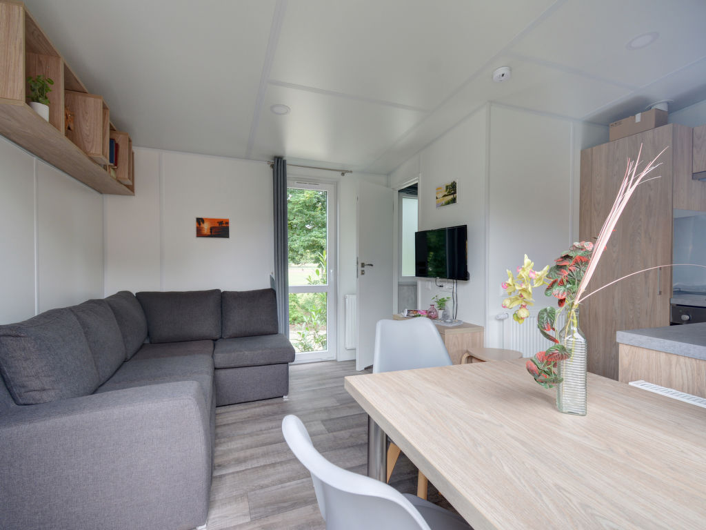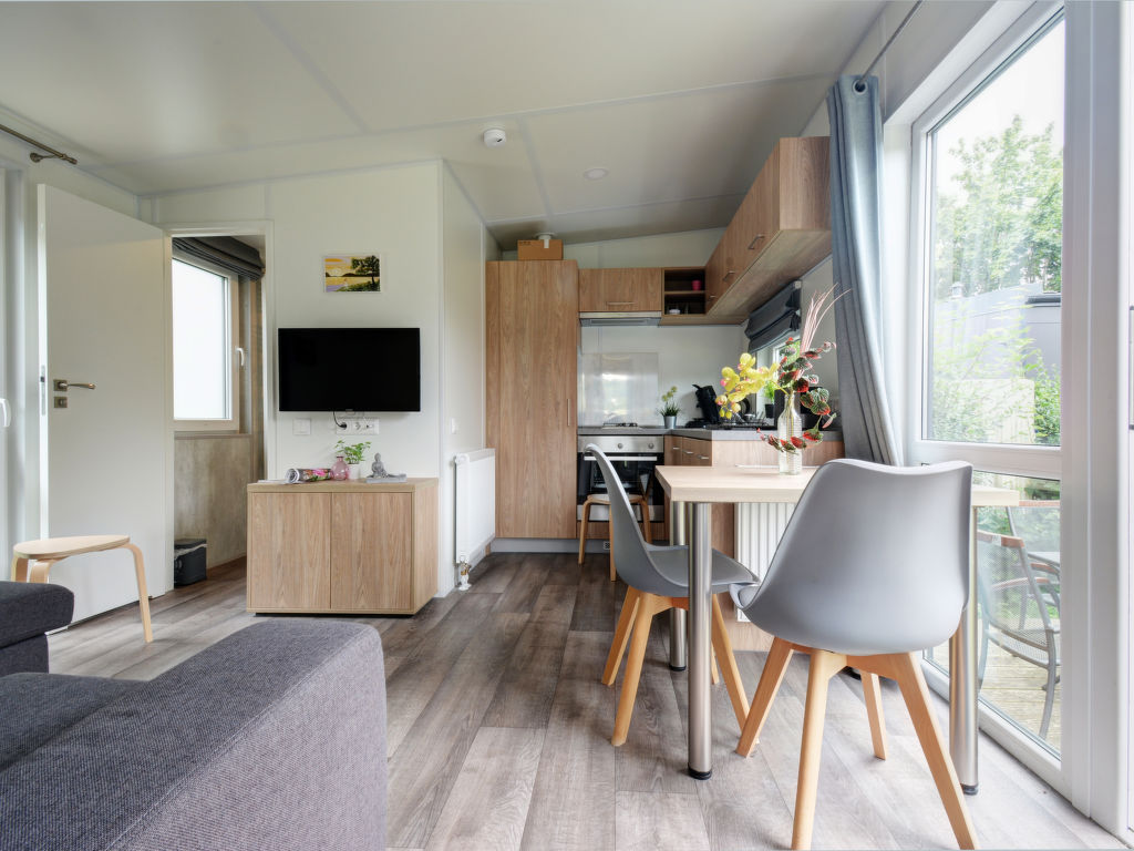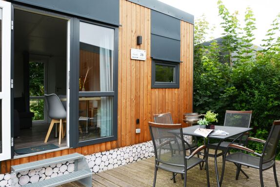 Tiny Haus Edith, 2-Zimmer-Mobilheim 25 m2. Objekt geeignet für 2 Erwachsene + 2 Kinder. Gemütlich eingerichtet: Wohn-/Schlafzimmer mit 1 Diwanbett (120 cm, Länge 170 cm), Sat-TV. 1 Zimmer mit 1 franz. Bett (140 cm, Länge 200 cm). Offene Küche (Backofen, 2 Glaskeramikplatten, Gasherd, 2 Flammen, Wasserkocher, elektrische Kaffeemaschine). Dusche/WC. G-Heizung. Kleine Terrasse. Terrassenmöbel. Parkplatz in 50 m. Bitte beachten: Nichtraucher-Haus.