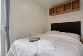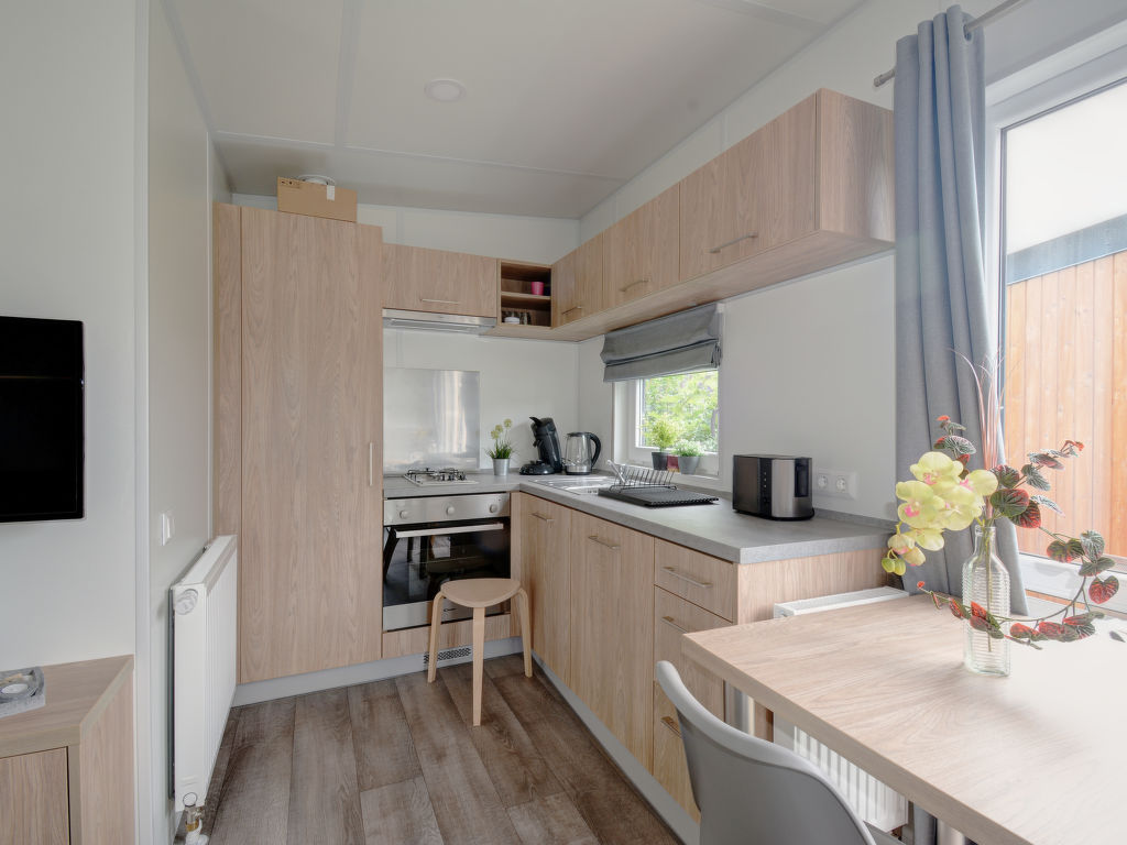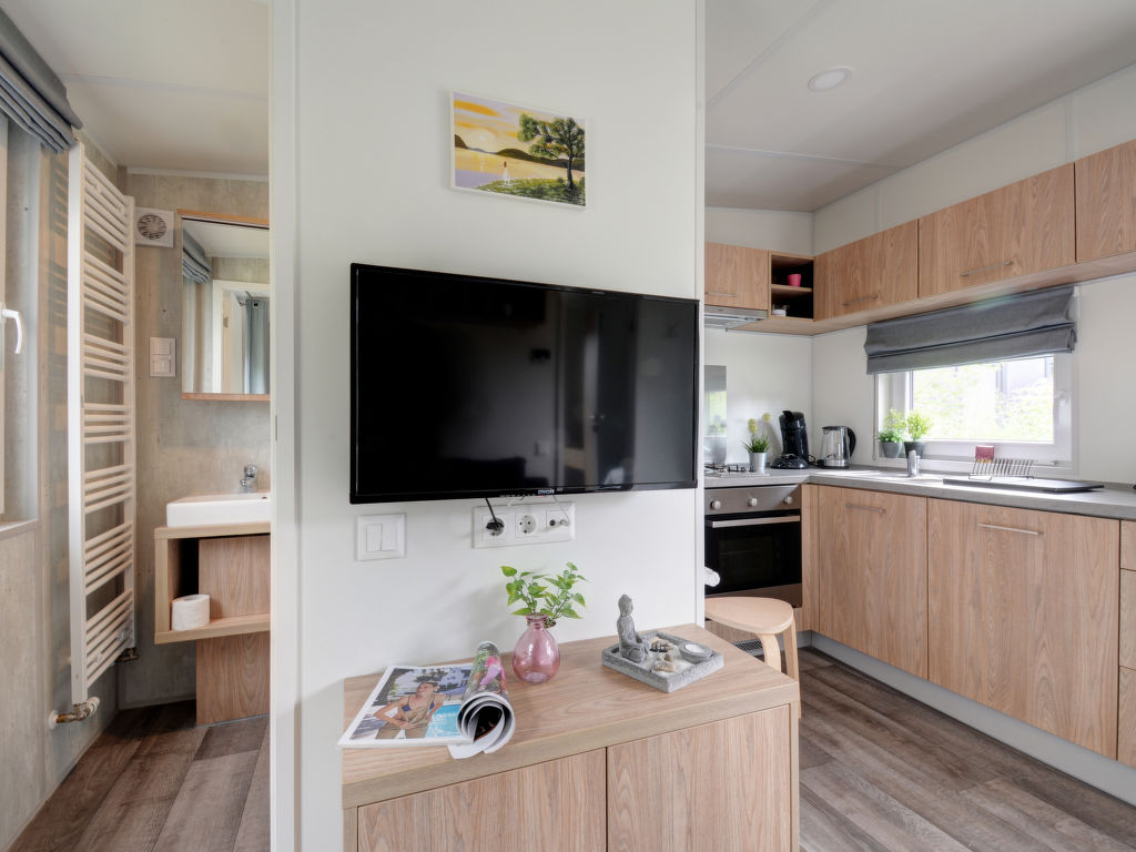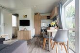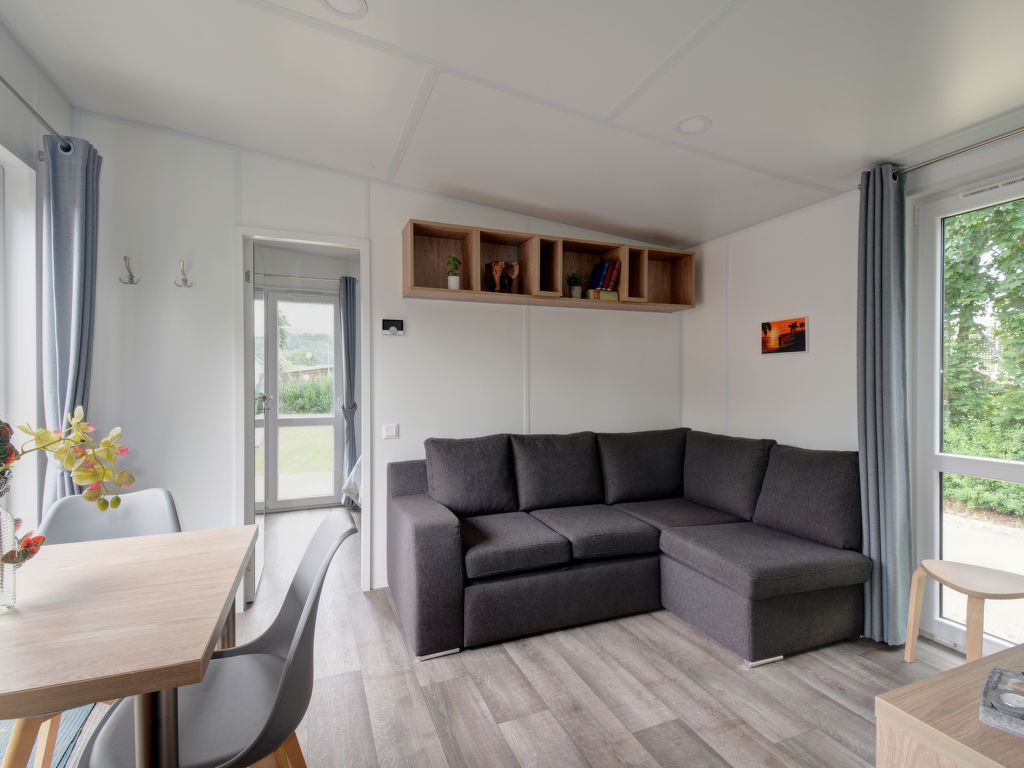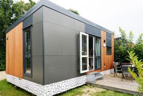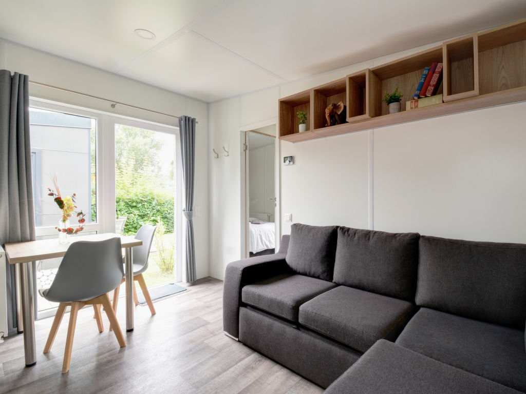 Tiny Haus Edith, 2-Zimmer-Mobilheim 25 m2. Objekt geeignet für 2 Erwachsene + 2 Kinder. Gemütlich eingerichtet: Wohn-/Schlafzimmer mit 1 Diwanbett (120 cm, Länge 170 cm), Sat-TV. 1 Zimmer mit 1 franz. Bett (140 cm, Länge 200 cm). Offene Küche (Backofen, 2 Glaskeramikplatten, Gasherd, 2 Flammen, Wasserkocher, elektrische Kaffeemaschine). Dusche/WC. G-Heizung. Kleine Terrasse. Terrassenmöbel. Parkplatz in 50 m. Bitte beachten: Nichtraucher-Haus.