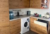 Im Erdgeschoss befindet sich ein gemütliches Wohnzimmer, das mit der Küche und dem Essbereich verbunden ist – ein idealer Raum für gemeinsames Kochen und Freizeit. Vom Wohnzimmer aus gelangt man direkt auf die Terrasse und kann dort an der frischen Luft entspannen. Ein WC rundet das Angebot auf dieser Ebene ab. Eine neuwertige Holzstiege führt ins Dachgeschoss, wo sich zwei weitere Zimmer befinden, beide mit Anschluss für Dusche und WC.