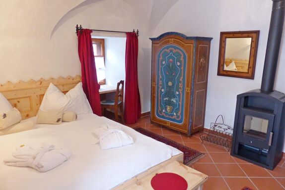 Schlossromantik pur in den ruhigen, kuscheligen, wohlig warmen, zirbenholzduftenden Gemächern, auf der Sonnenterrasse am Schloss-Teich oder im historischen Gewölbe von anno 1150.
