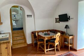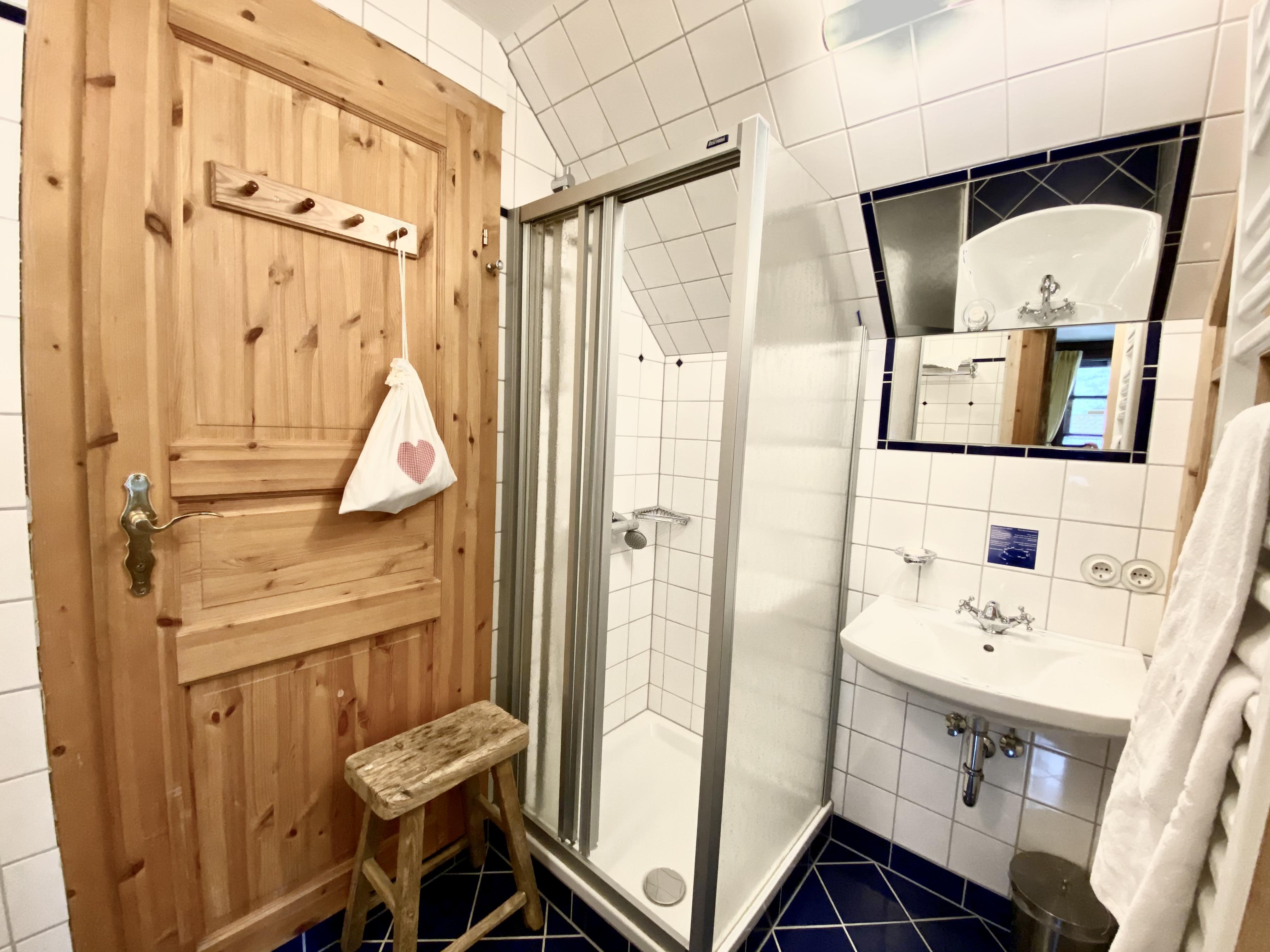 Schlafzimmer, Küchenzeile mit Esstisch, Badezimmer, Dusche