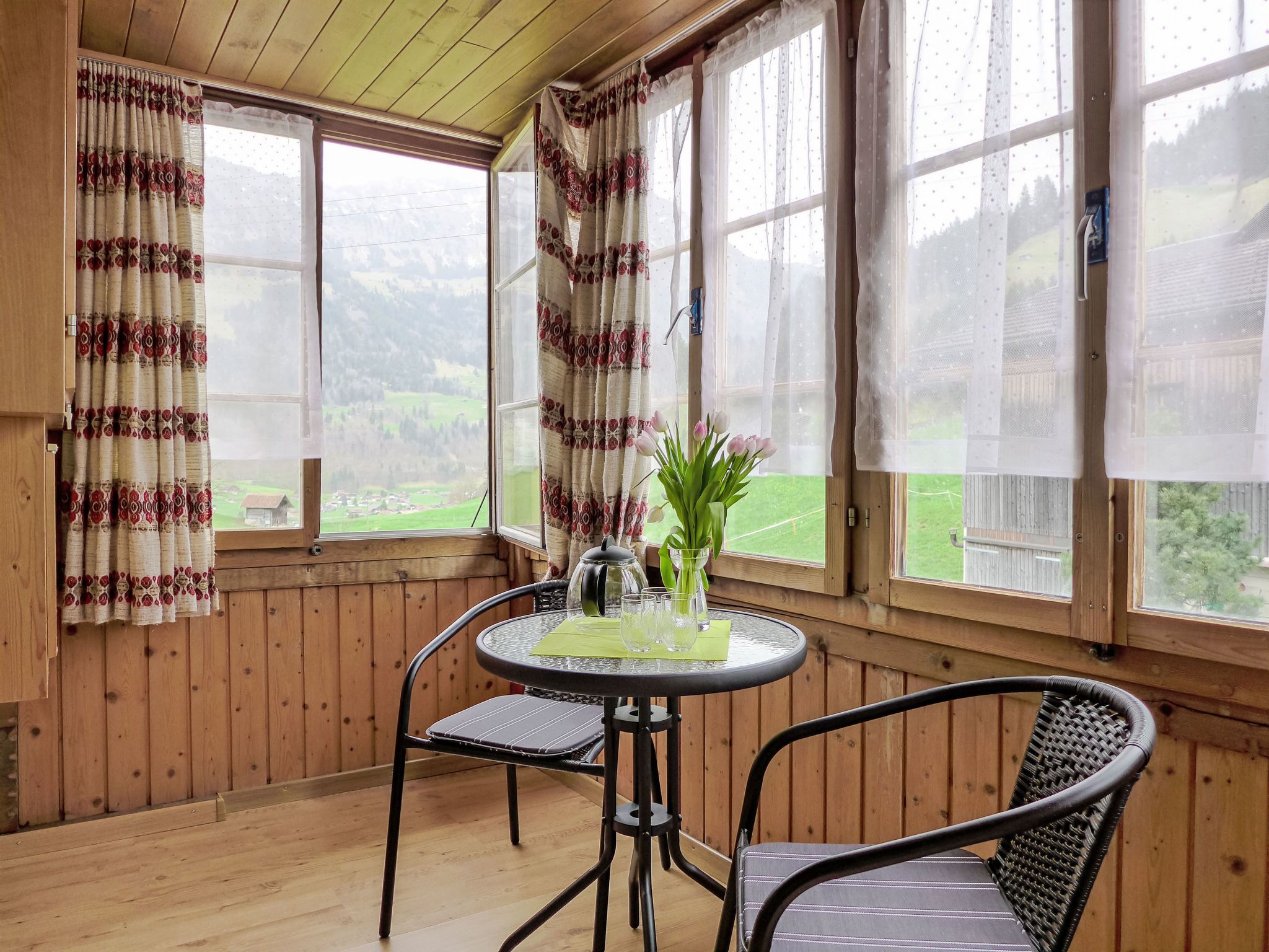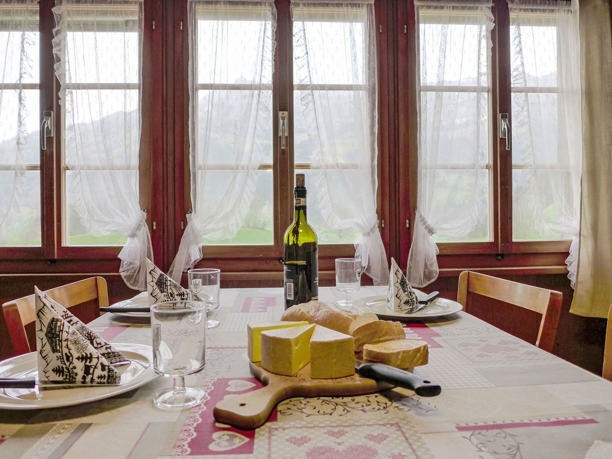 Reinisch, 2-Zimmer-Wohnung 60 m2, im erhöhten Erdgeschoss. Geräumig und hell, einfach und gemütlich eingerichtet: grosses Wohn-/Schlafzimmer mit 1 Diwanbett (120 cm, Länge 200 cm), Schwedenofen, Esstisch und TV. Ausgang zur Veranda. 1 Zimmer mit 1 Doppelbett (160 cm, Länge 200 cm). Grosse Wohnküche (4 Kochplatten, Backofen, Toaster, Wasserkocher, Mikrowelle, elektrische Kaffeemaschine, Racletteofen, Fondue Set (Käse)) mit Esstisch, Holzofen. Dusche/WC. Holzheizung, Boiler (100 Liter). Herrliche Sicht auf die Berge und die Landschaft. Zur Verfügung: Haartrockner, Holz (gratis). Internet (WLAN, gratis). Parkplatz. Bitte beachten: geeignet für Familien. Nichtraucher-Unterkunft. Maximal 1 Haustier/Hund erlaubt. Rauchmelder, Feuerlöscher.