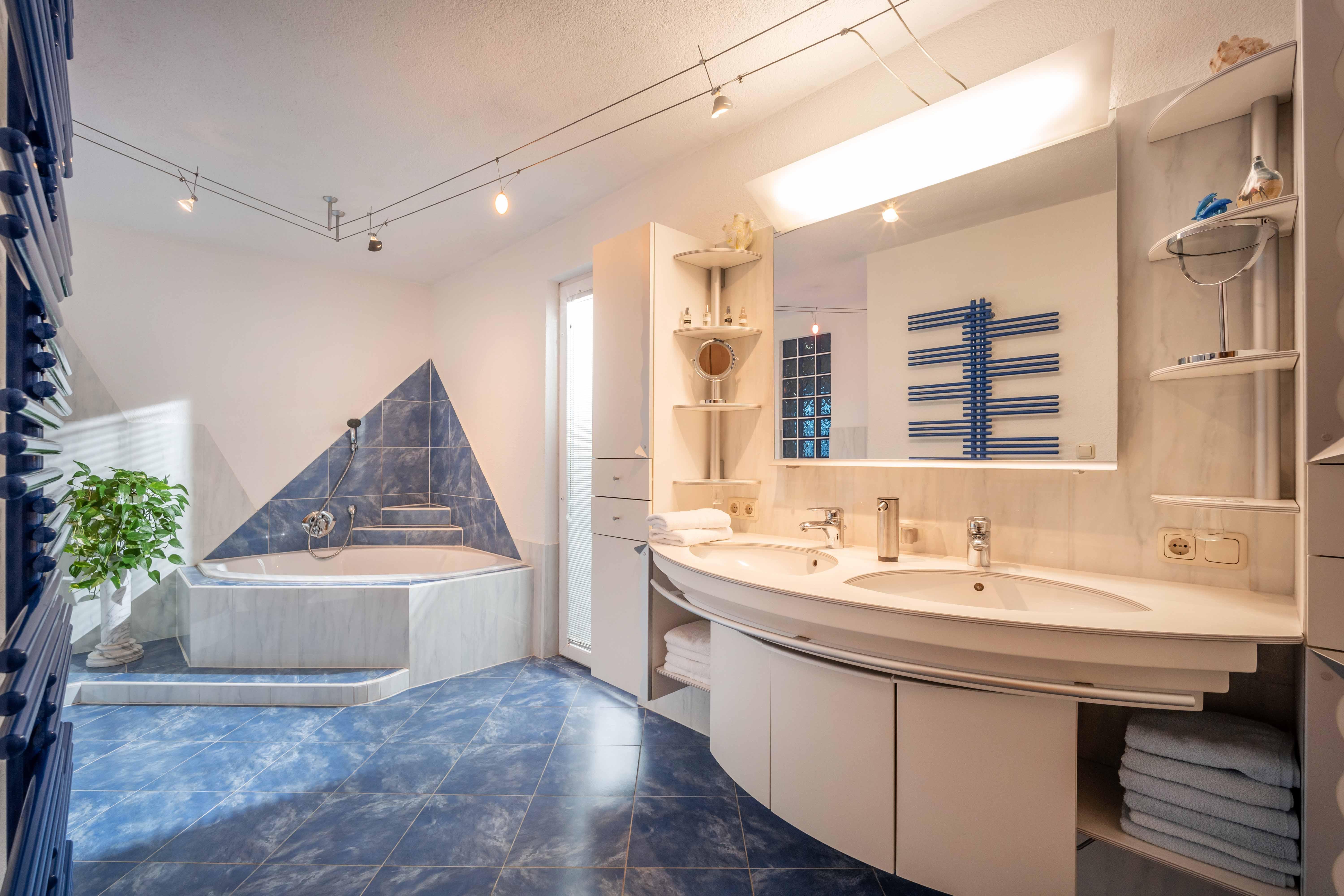 3 Schlafzimmer - eines davon mit Doppelbett, begehbaren Schrank und Tresor.1 Zimmer mit Doppelbett und 1 Zimmer mit handbemalten Vollholzmöbeln und Doppelbett.