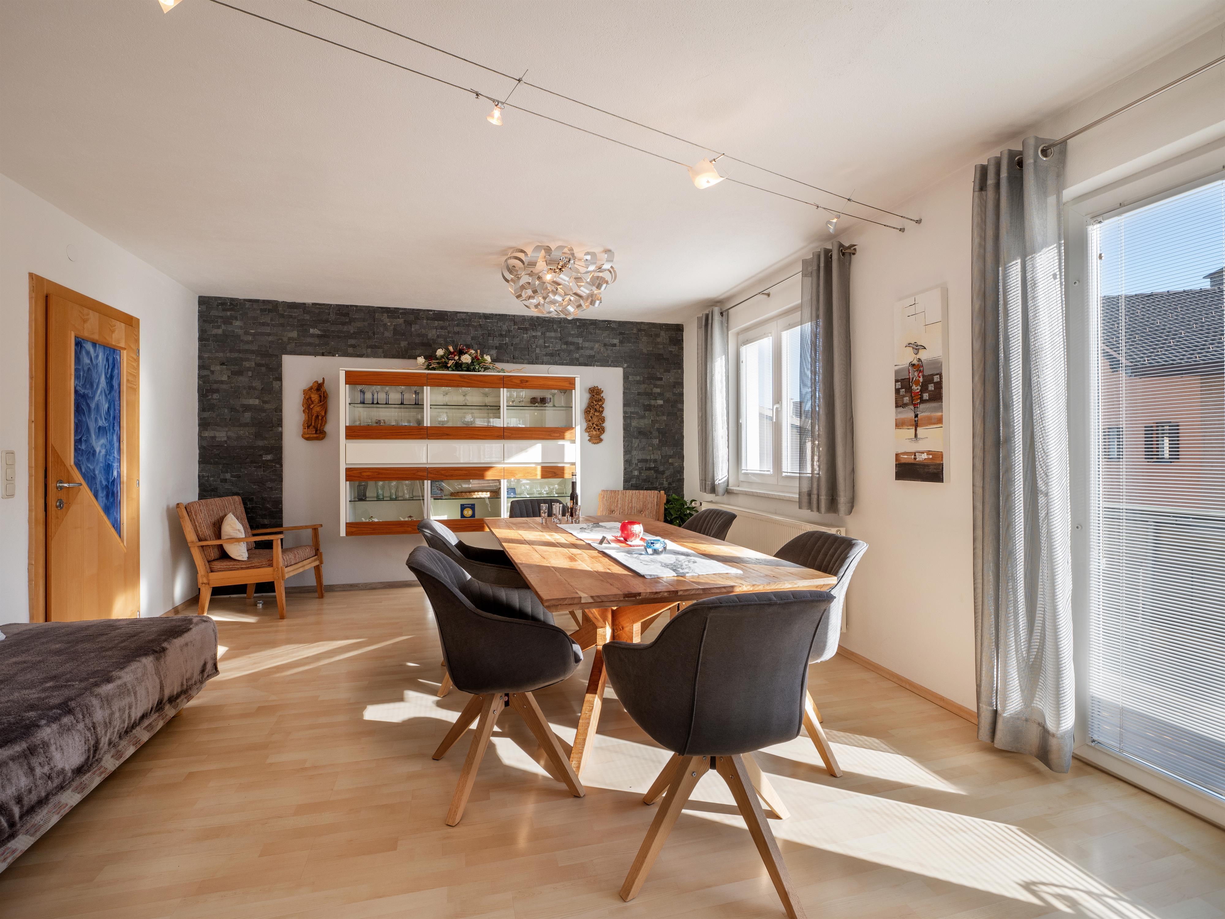 Die Ferienwohnung befindet sich im 1. Stock eines Wohn-/Geschäftshauses direkt neben einer Bäckerei mit Cafe.