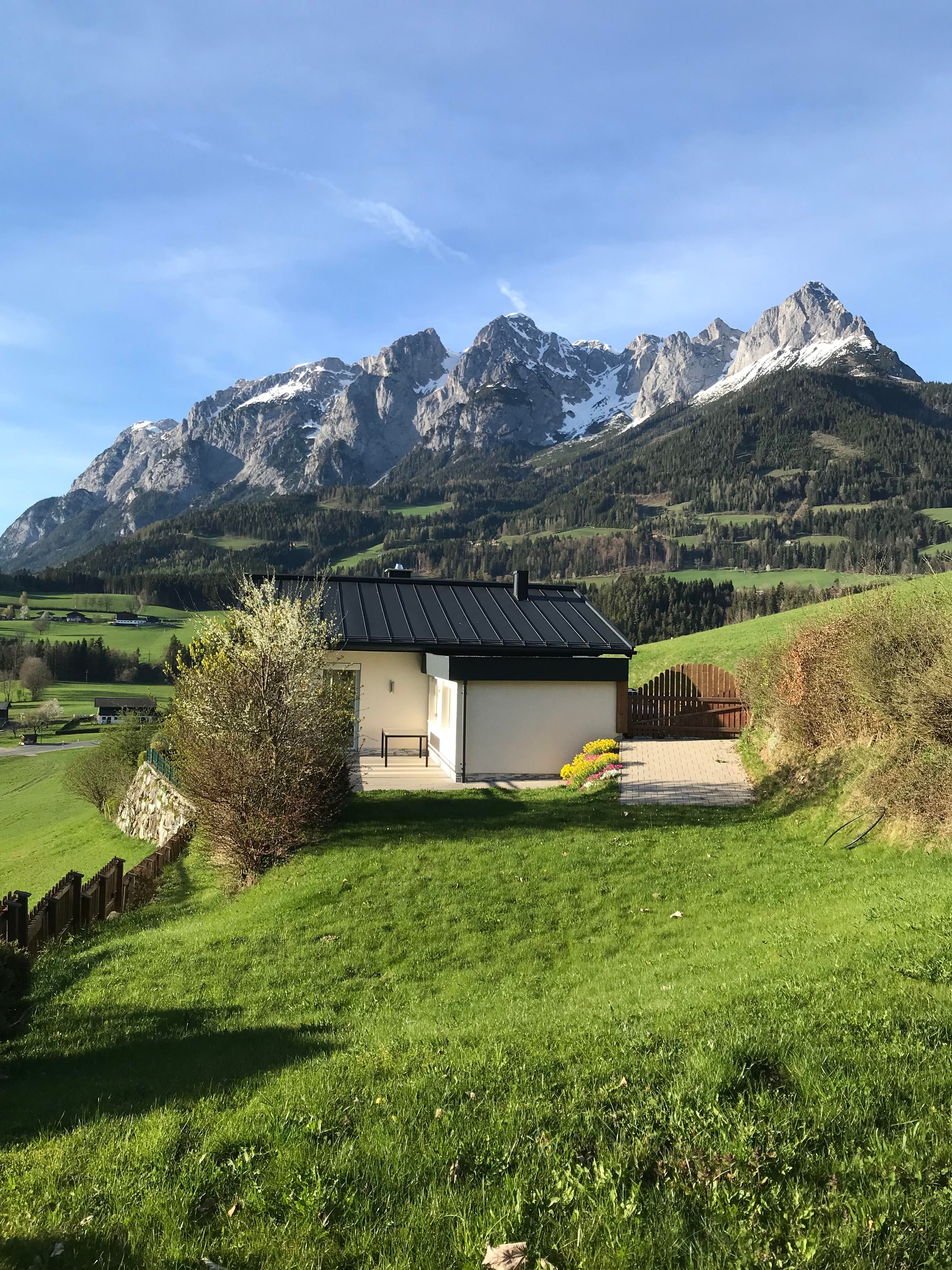 Willkommen im neu renovierten Ferienhaus Hochkönigblick! Dieses charmante Haus bietet Platz für bis zu sechs Personen und liegt nur 2 km vom Zentrum von Pfarrwerfen entfernt. Mit drei Schlafzimmern, drei Bädern und einem geräumigen Wohnbereich mit Küche ist es ideal für Familien oder Gäste, die ihren Aufenthalt in vollen Zügen genießen möchten. Erleben Sie die atemberaubende Aussicht auf den Hochkönig, das Hagengebirge und das Tennengebirge von der sonnigen Terrasse aus, und erkunden Sie die umliegende Berglandschaft, die zahlreiche Wandermöglichkeiten bietet. Geschäfte, Restaurants und das Schwimmbad Pfarrwerfen befinden sich in der Nähe, was Ihren Aufenthalt noch angenehmer macht.