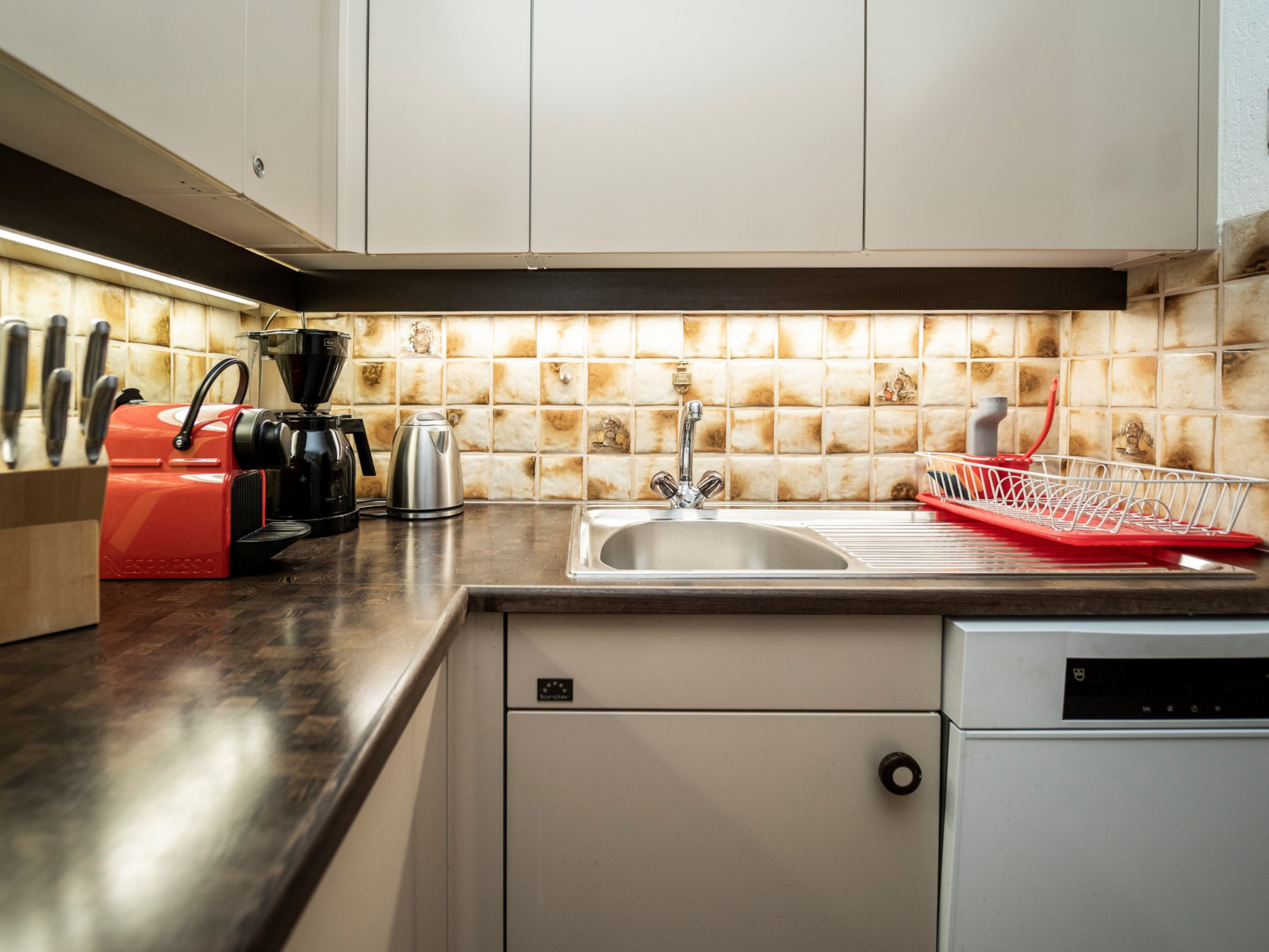 Gut eingerichtete kleine Küche mit Geschirrspülmaschine, grossem Kühlschrank mit Gefrierfach, Mikrowelle, E-Herd, Backofen, Nespresso-Maschine (Kapseln bitte selbst mitbringen). Küchenwäsche vorhanden und im Preis inbegriffen. Esszimmer: