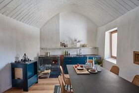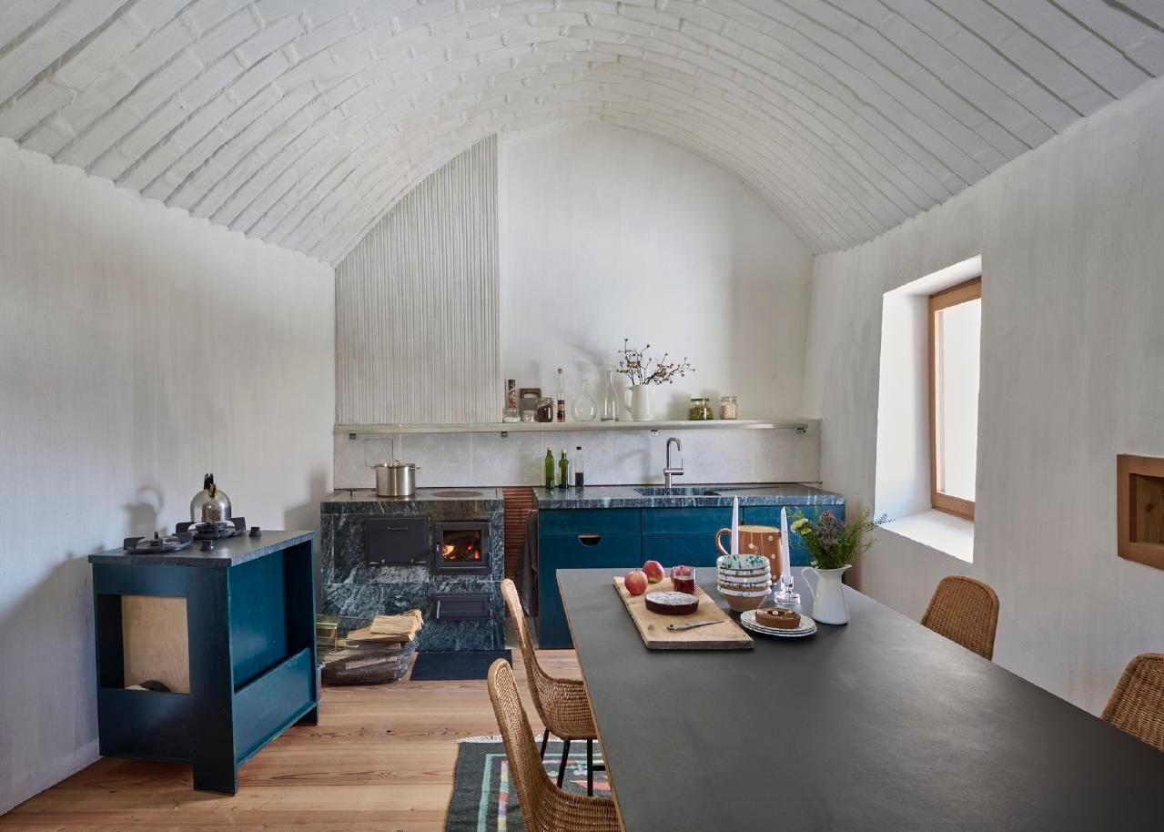 Ofen / Cheminée: Neuer Specksteinherd in der Küche und historischer gemauerter Ofen in der Stube