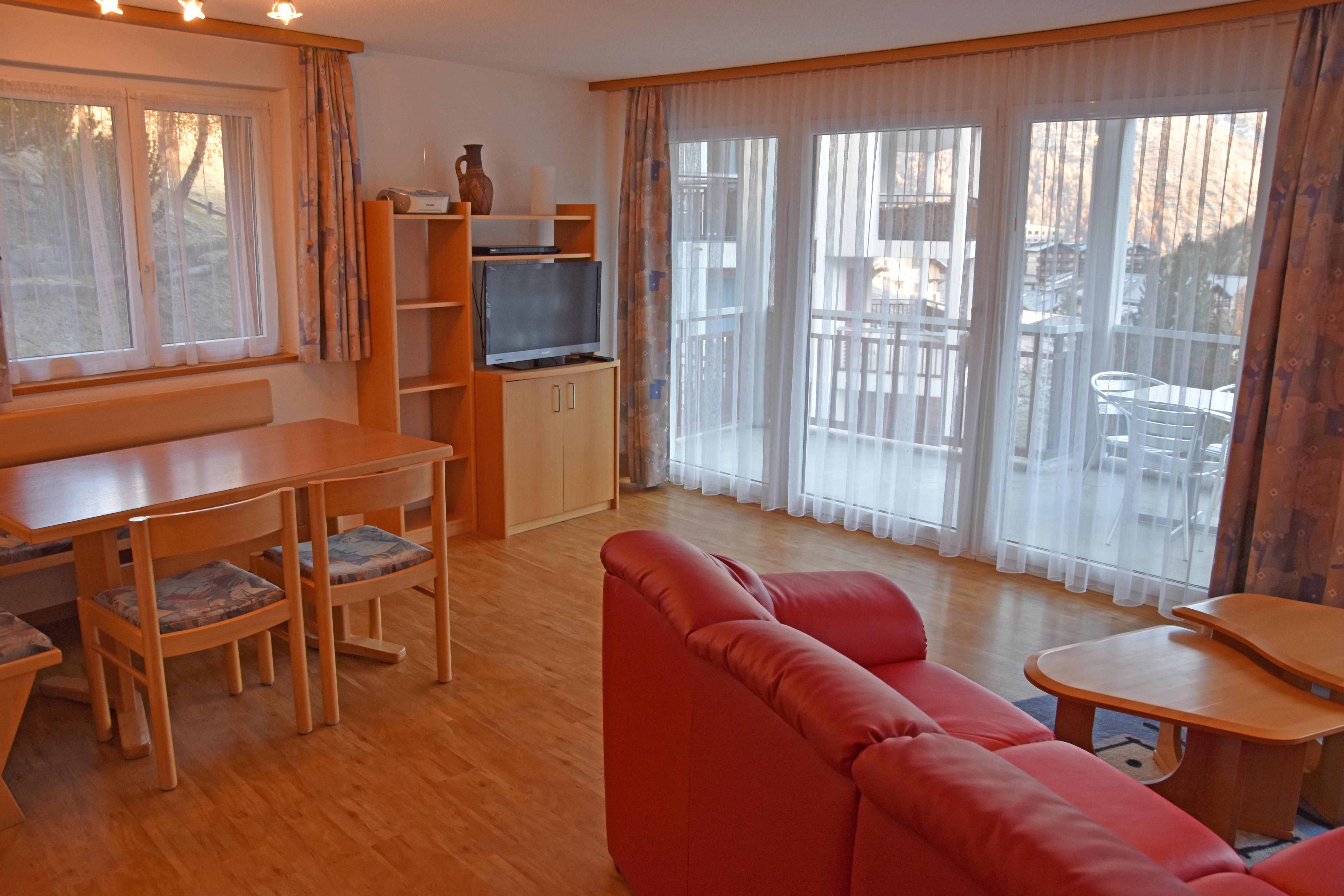 Es verfügt über ein Doppelzimmer mit Südbalkon und ein 2 Bettzimmer; Bad/WC und ein separates WC. Bett- und Frotteewäsche sind vorhanden und im Preis inbegriffen.