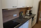 Die Küche ist mit Herd, Ceranfeld, Geschirrspüler, Kühlschrank mit Gefrierfach, Kaffeemaschine, Wasserkocher, Toaster und Geschirr ausgestattet.