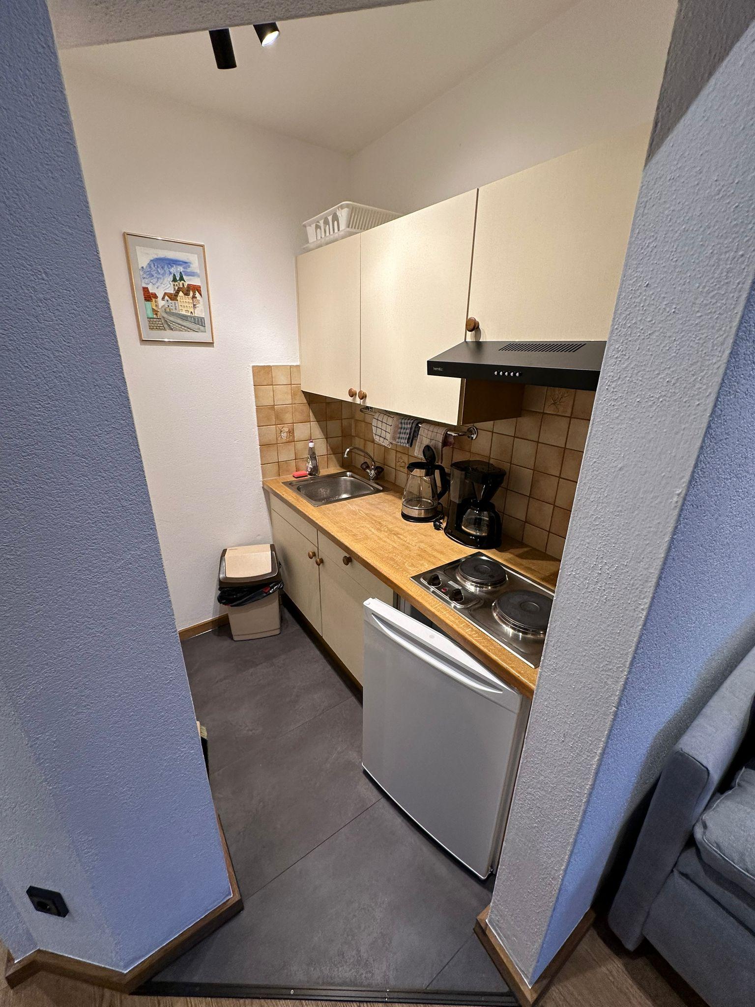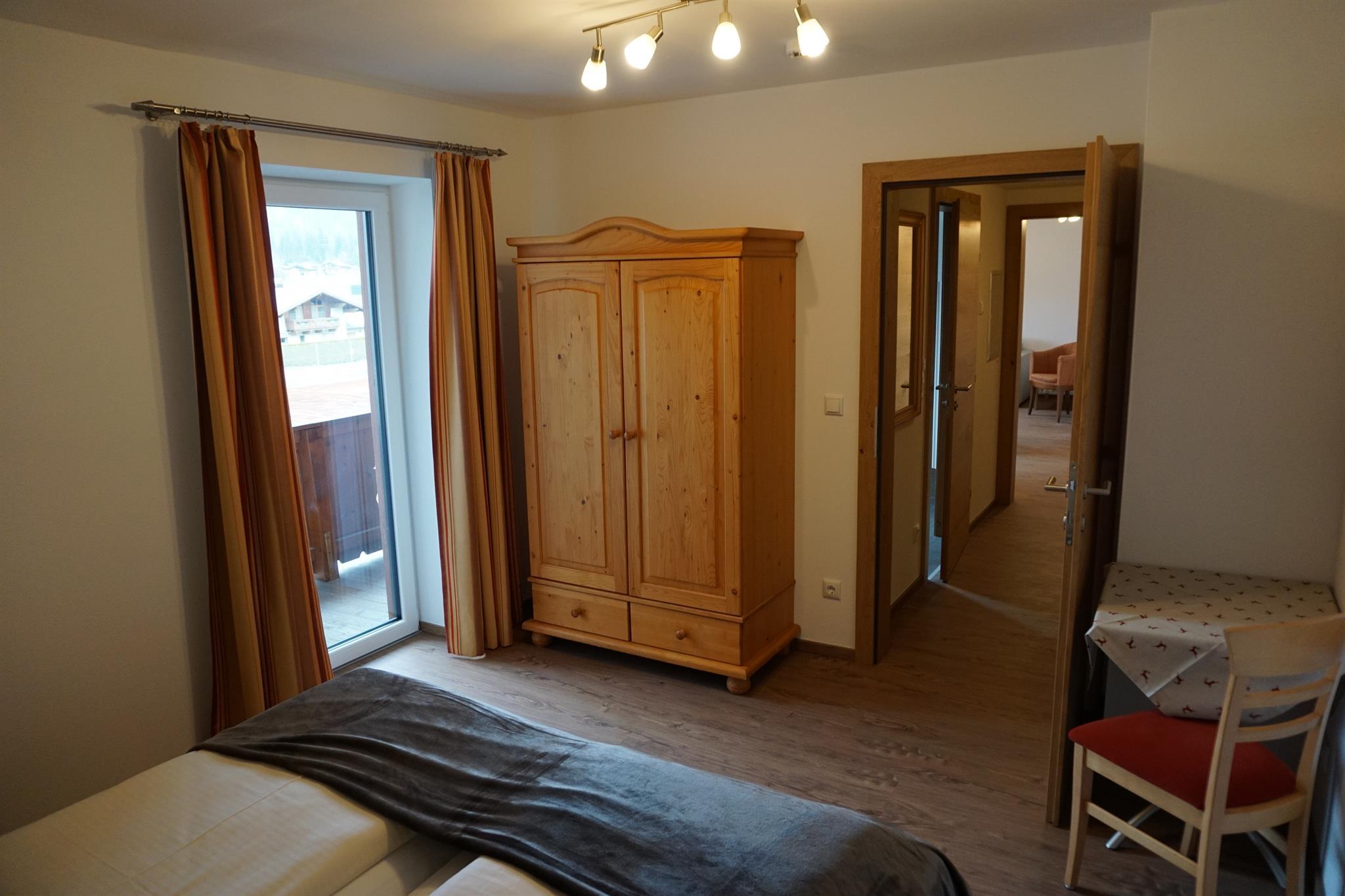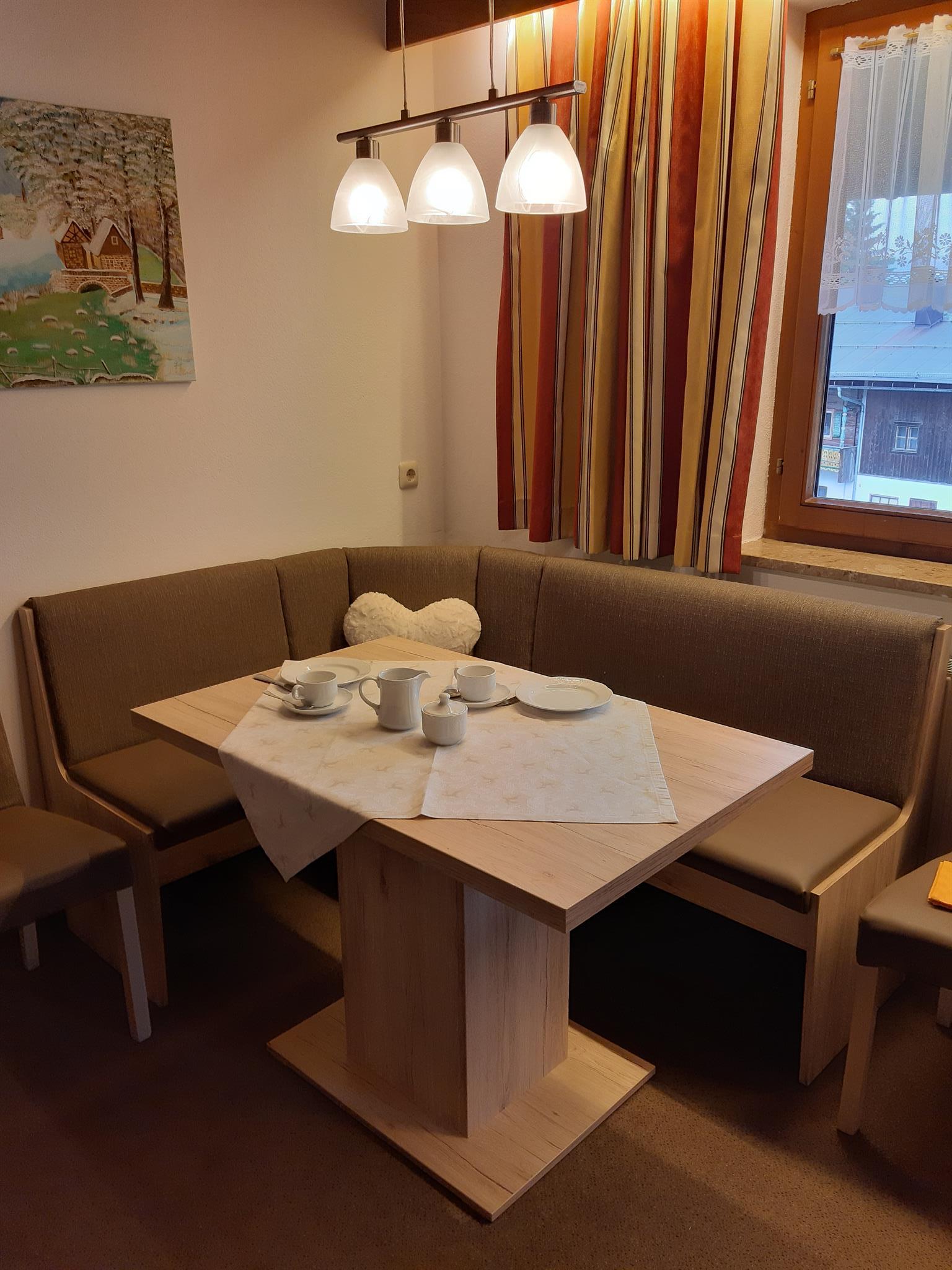 Die Ferienwohnung ((ca. 70 m2) mit zwei Schlafzimmern, einem Wohnschlafraum mit Kachelofen und ausziehbarer Couch, Sitzecke, Kochnische, getrenntes Bad/WC, Balkon oder Terrasse, Kabel-TV, Radio, gebührenfreier Internetanschluss.