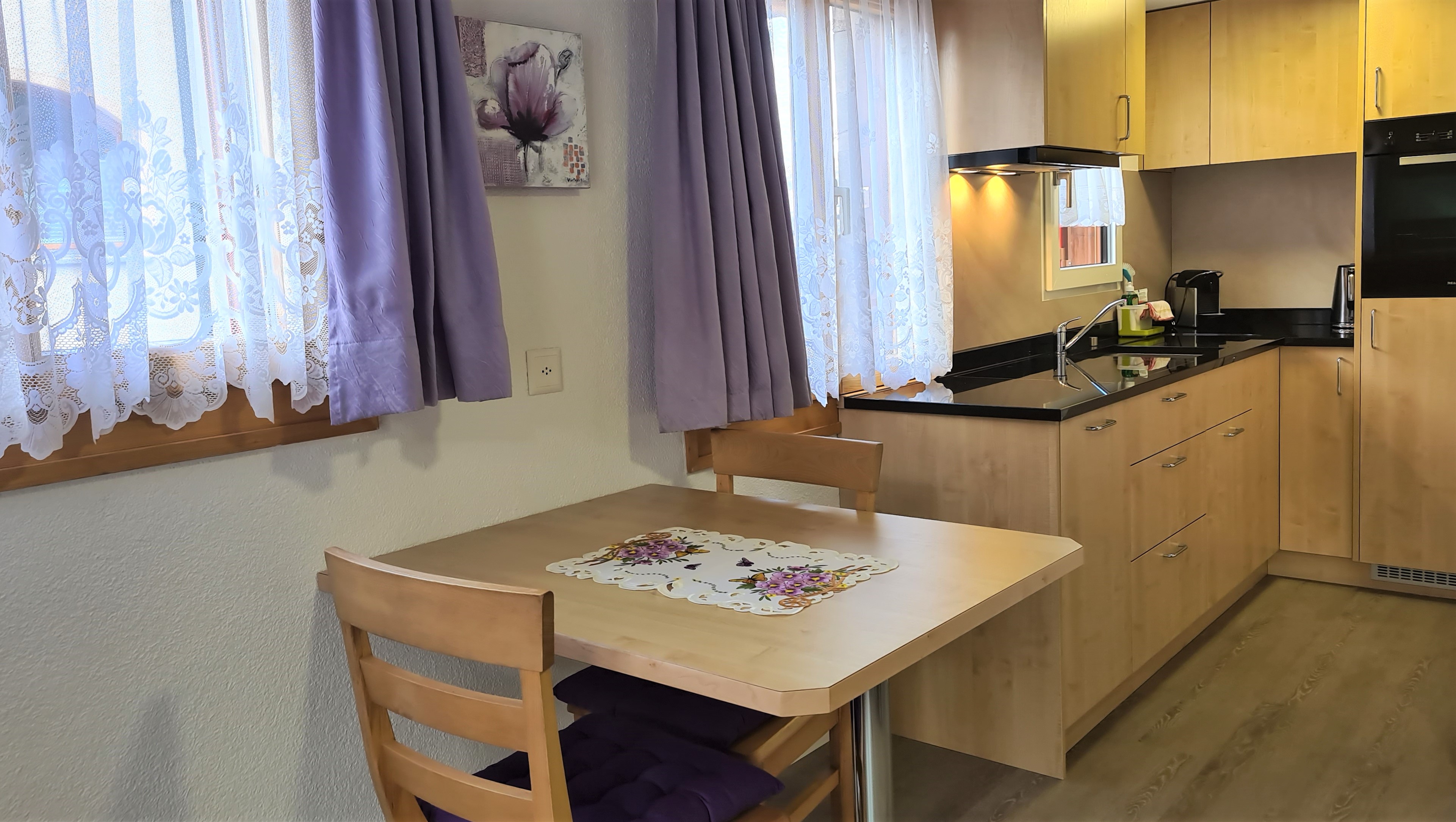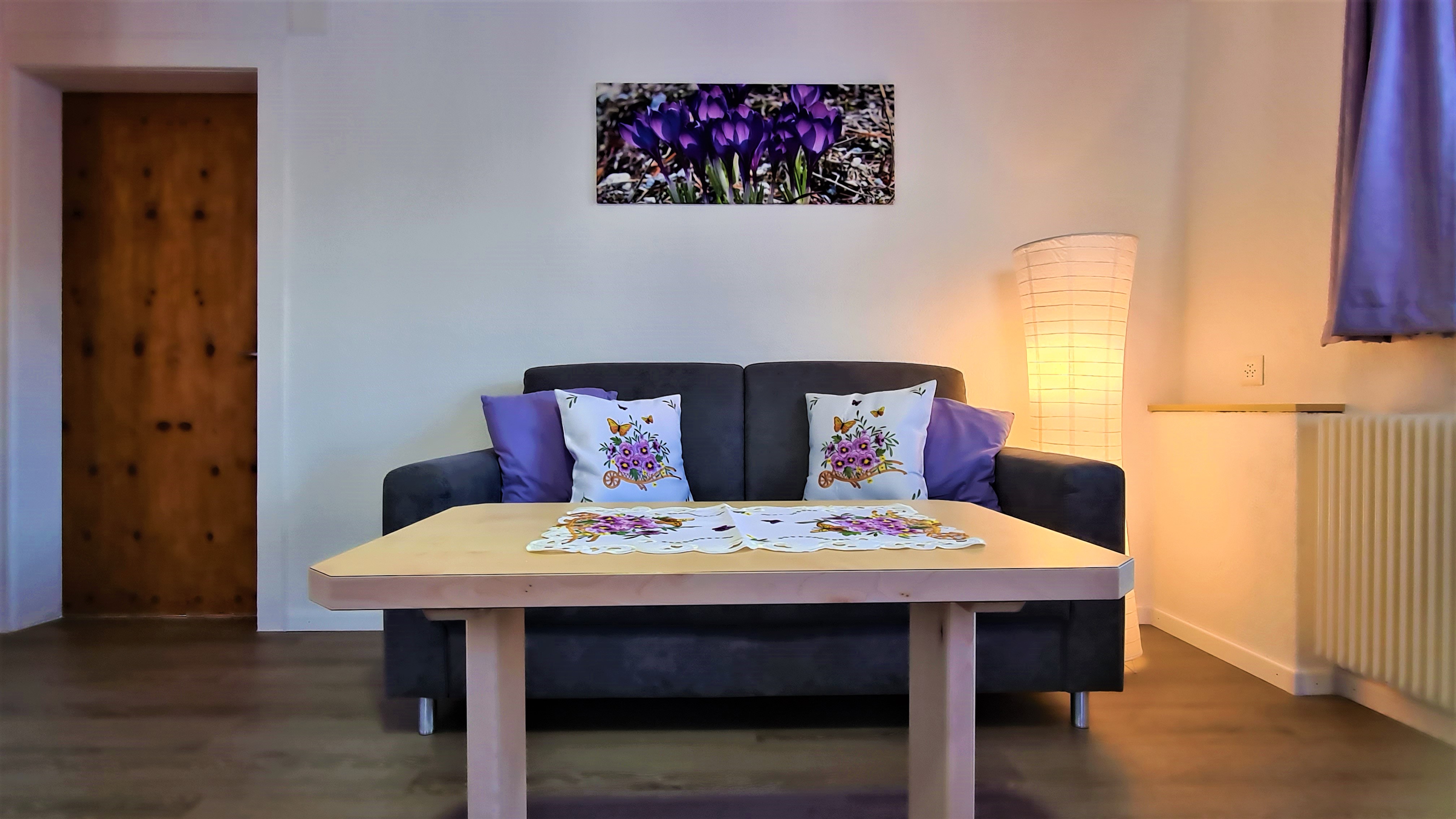 Die 2-Zimmerwohnung befindet sich im 1. Stock. Ein grosses Schlafzimmer mit 2 bequemen Betten, 2 Polsterstühle, ein Wohn- Esszimmer, offene Küche, Keramikkochfeld, Geschirrspüler, TV/Radio- und W-Lan-Empfang, Dusche/WC, Balkon auf der Ost- & Südseite mit Sitzgelegenheit steht Ihnen zur Verfügung.