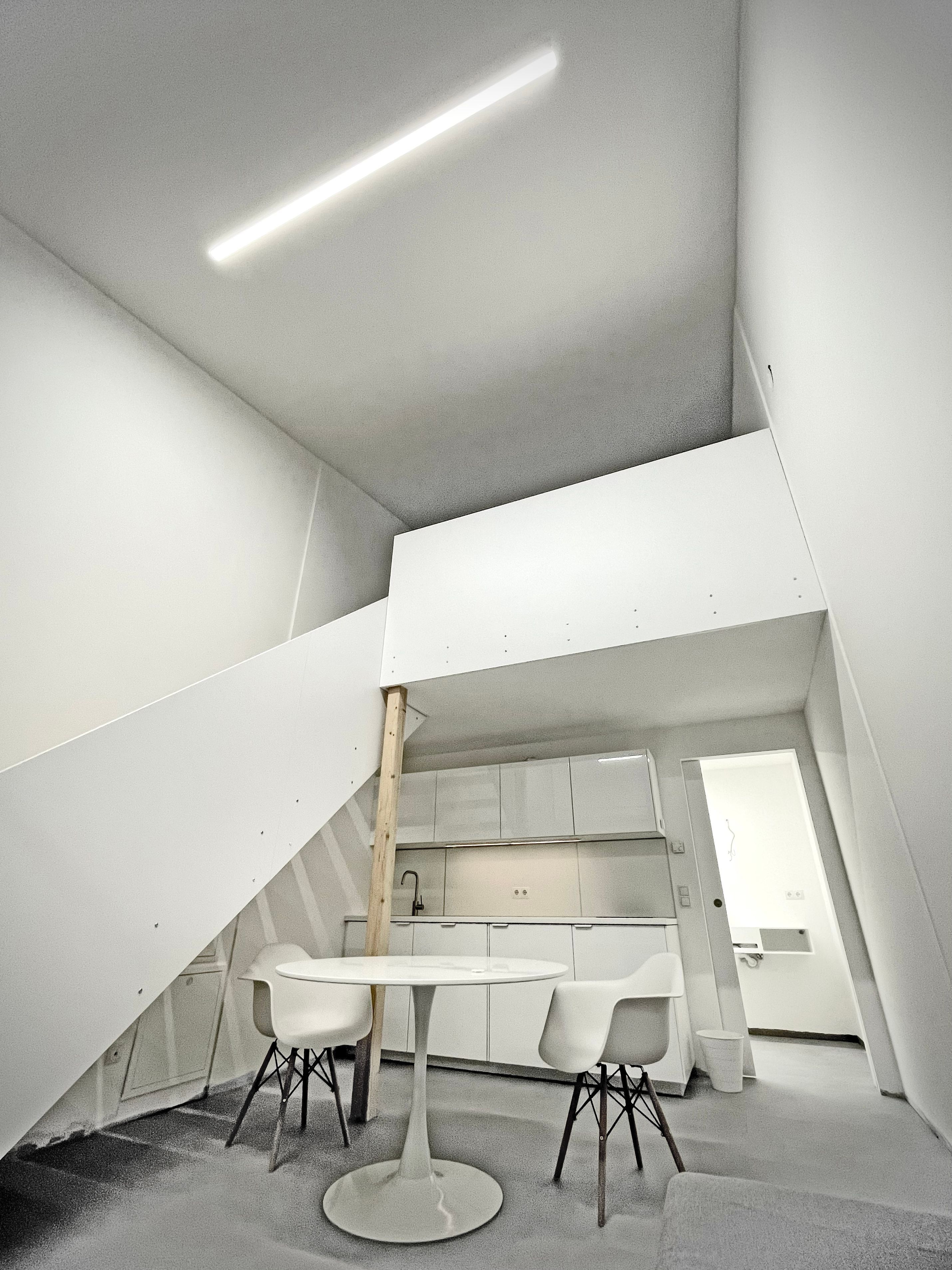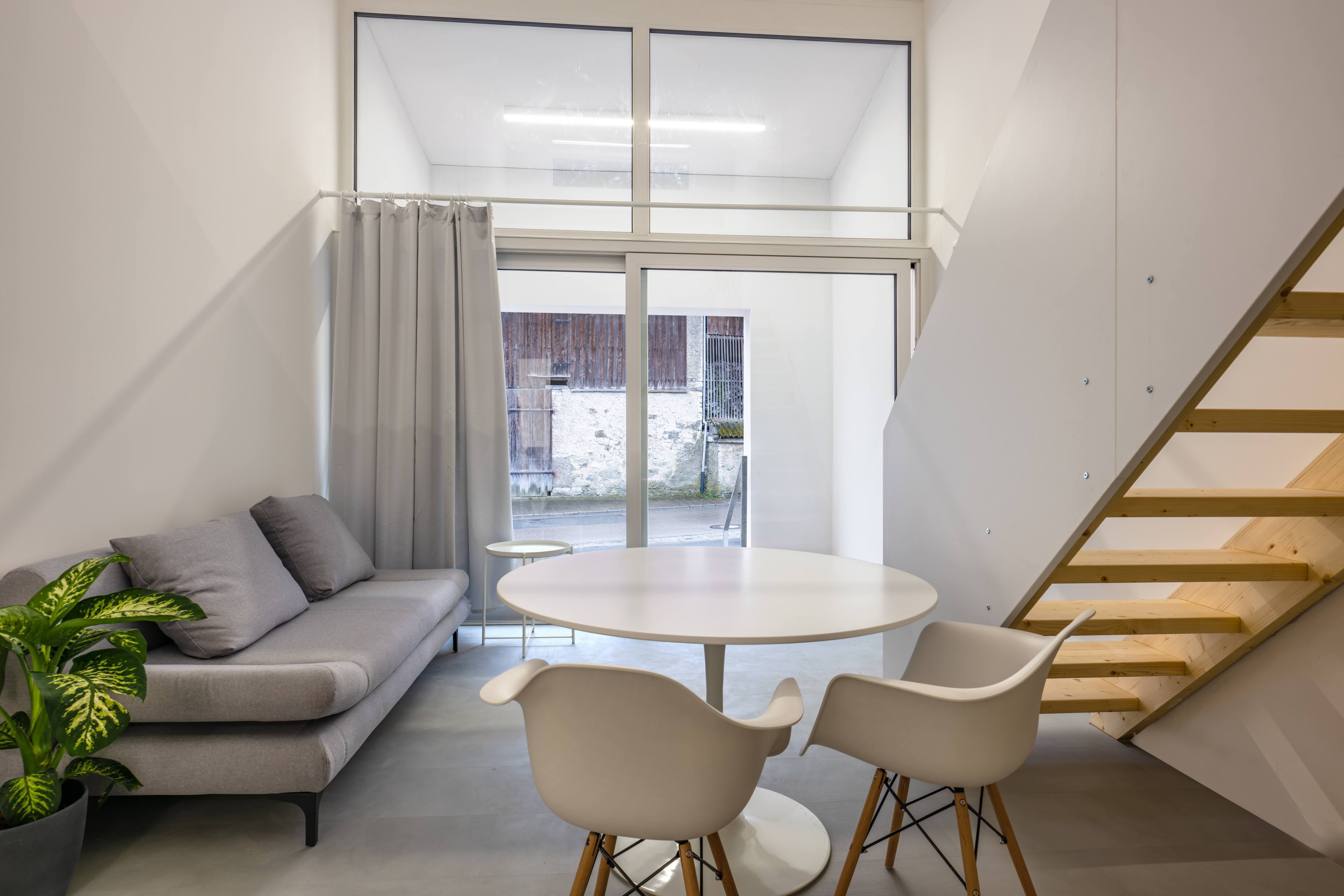 Loft 4.4 (55 m²) bis max. 3 Personen mit 1 Schlafzimmer, 1 Bad, 1 Küche, einer Terrasse sowie die Nutzung eines 1000m² großen Gästegartens.