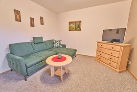 Wohnzimmer mit Couchgarnitur (Doppelbettcouch) und TV (abgeschlossener Raum);