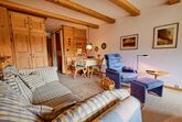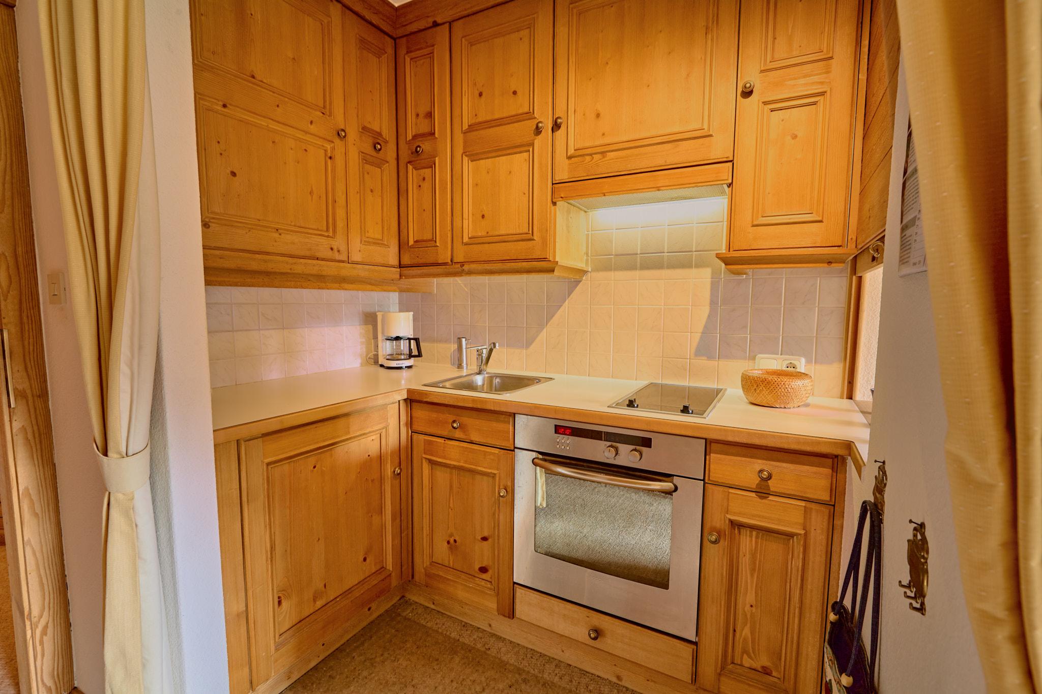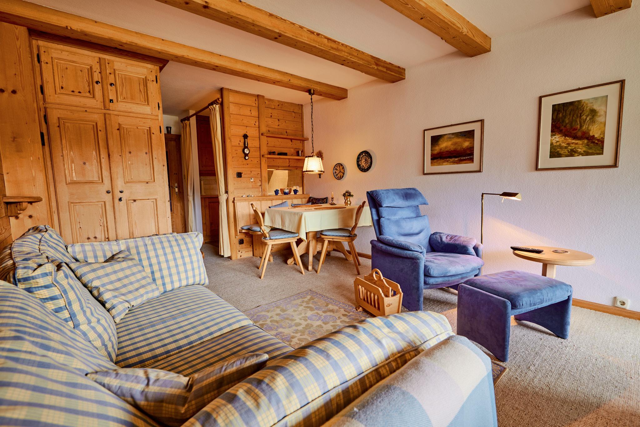 Die gemütliche Wohnung im Alpenstil verfügt über ein großzügiges Schlafzimmer, einem gemütlichen Wohn- und Essbereich, in dem eine ausziehbare Couch noch zusätzliche Schlafplätze bietet.