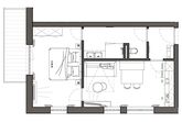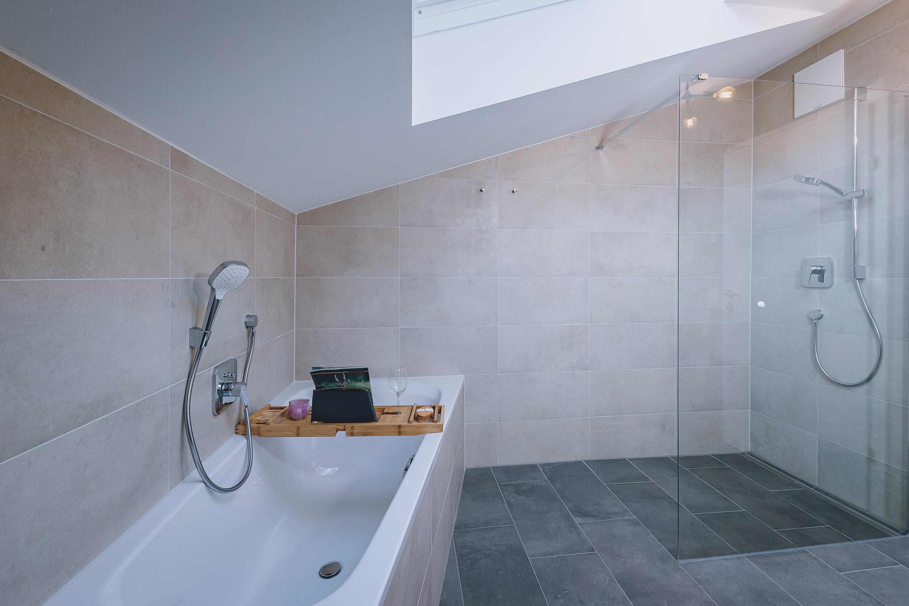 Die Apartments im 1. Obergeschoss verfügen über 50m² Wohnfläche (Wohnzimmer, separates Schlafzimmer, Badezimmer mit Dusche & WC und Balkon).