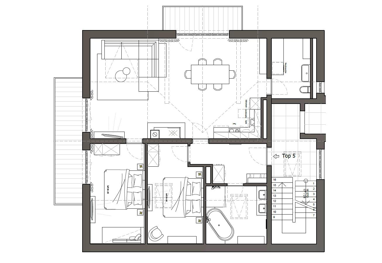 Das Apartmenthaus ist aufgeteilt in 5 einzelne Ferienwohnungen: