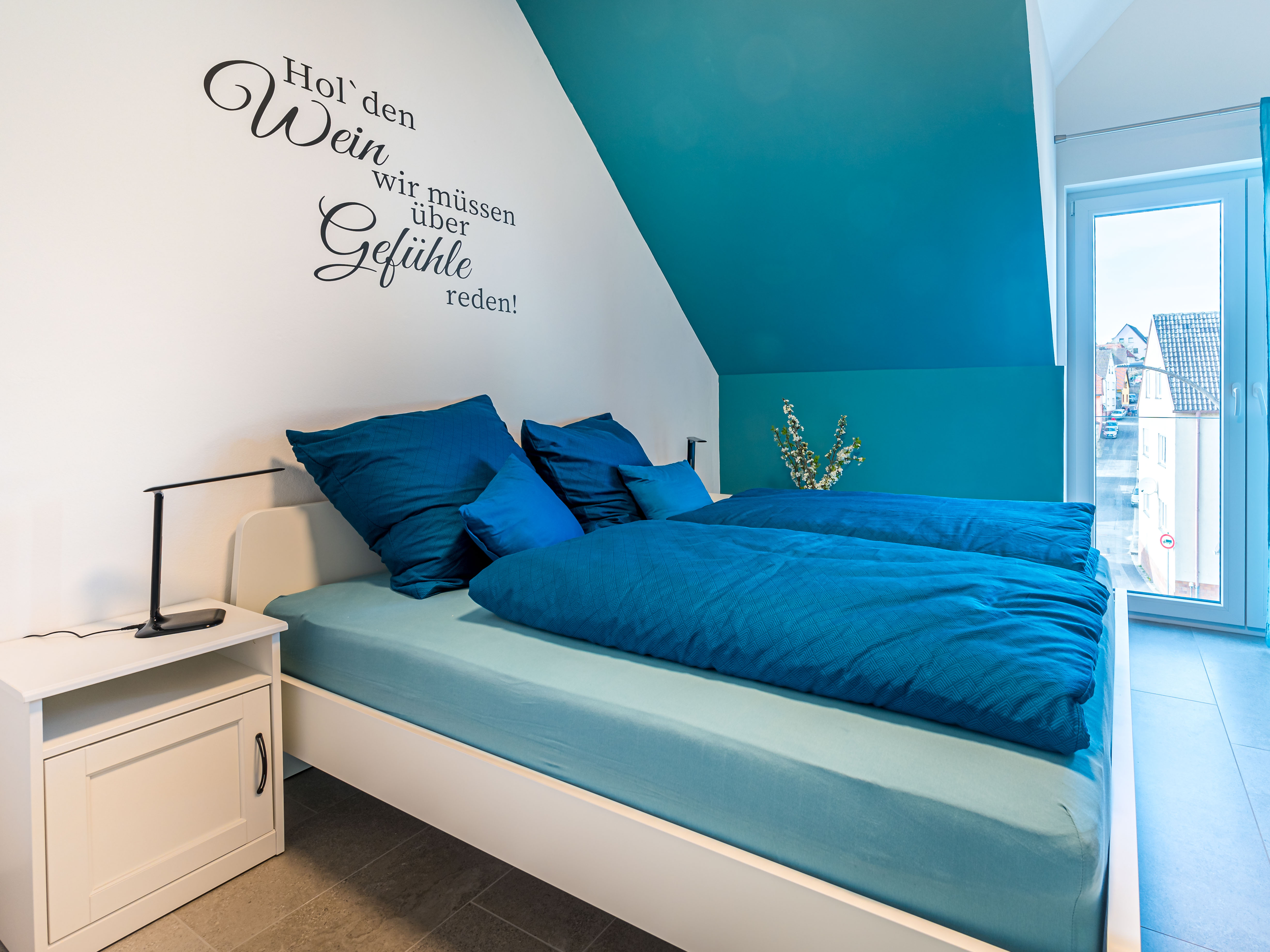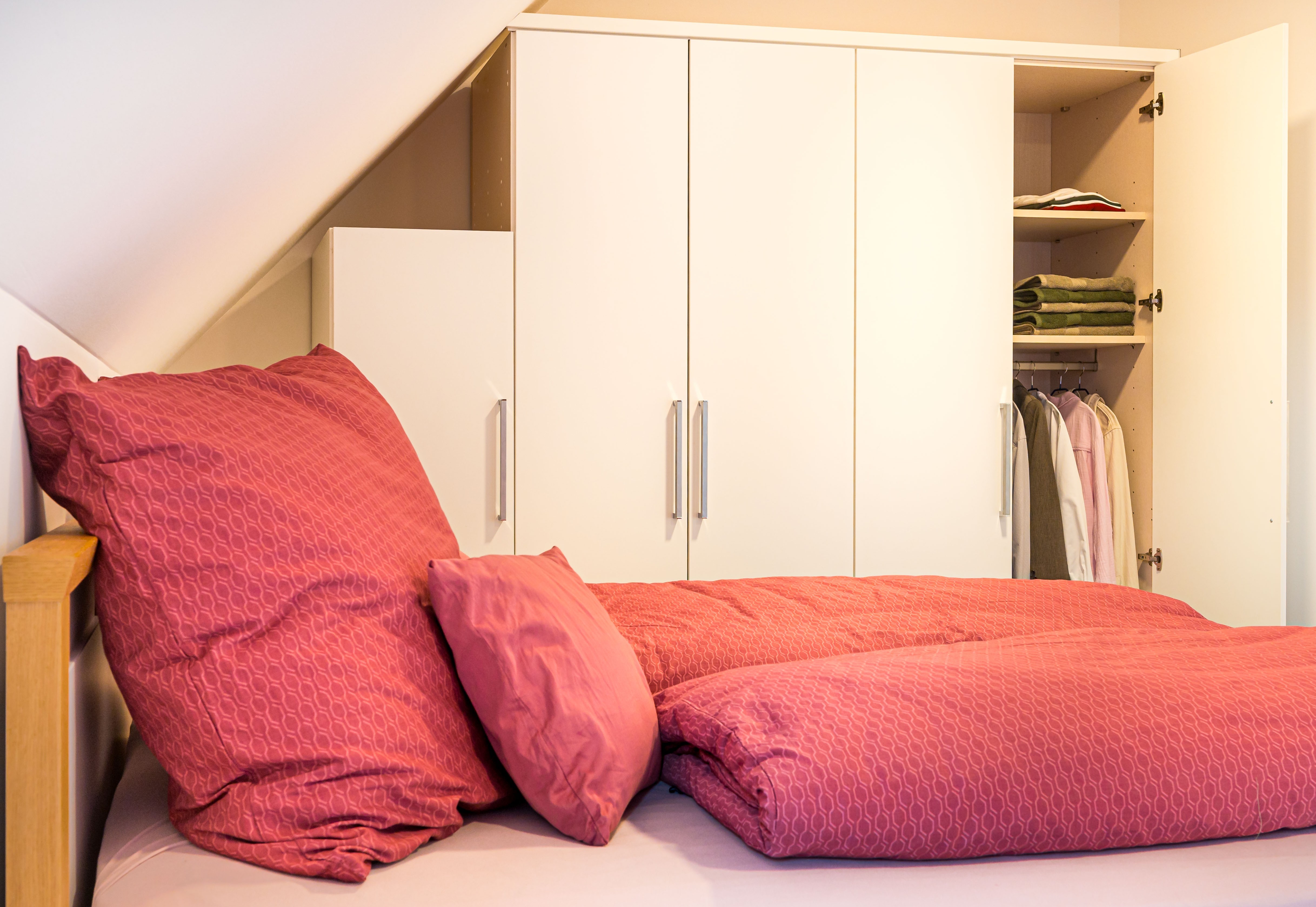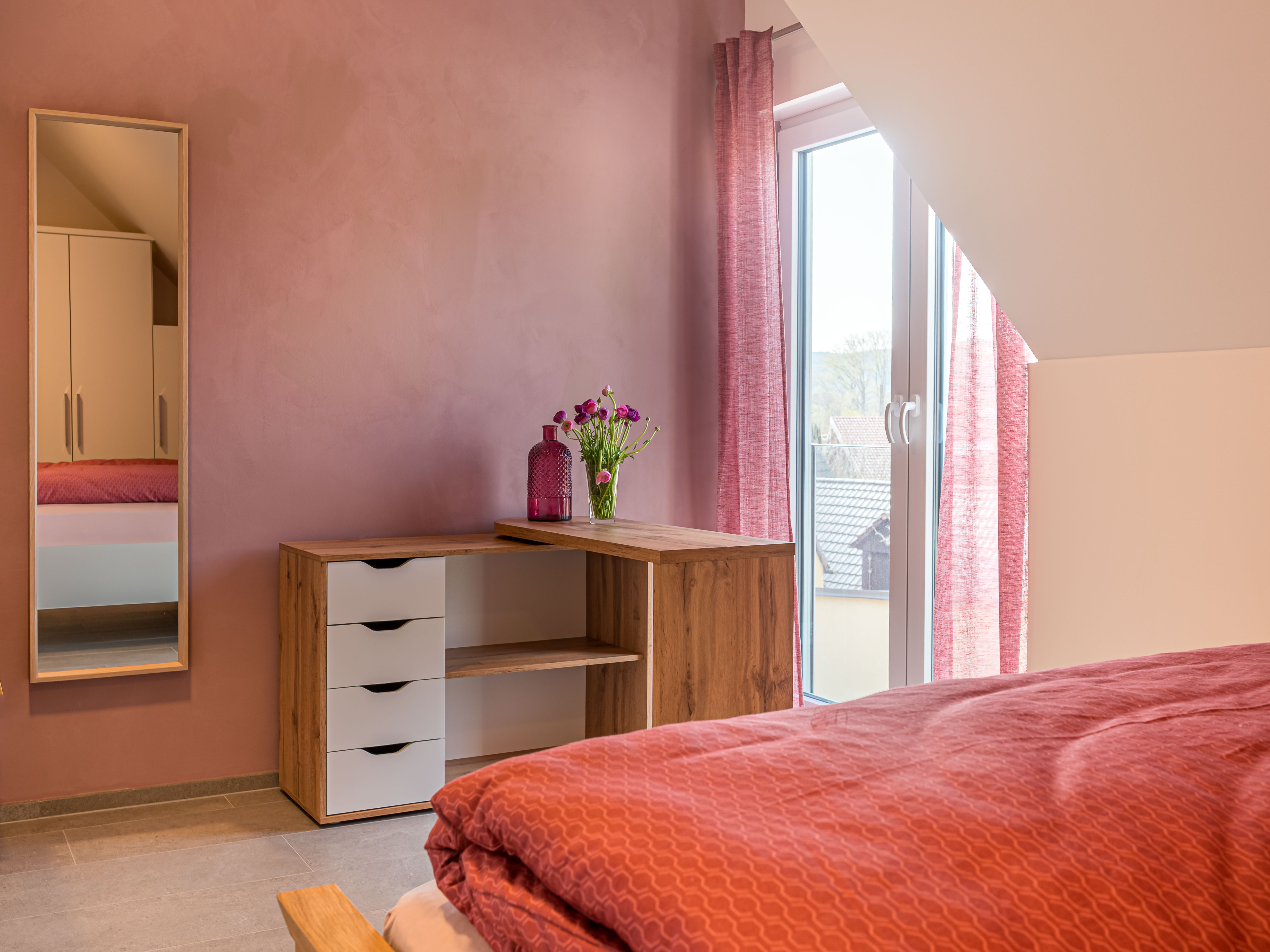Neben einem Schlafzimmer mit Doppelbett (1,80m x 2,00m)und zusätzlichem Bord, das auch als Schreibtisch genutzt werden kann, gibt es noch ein etwas kleineres Schlafzimmer mit französischem Bett (1,60m x 2,00m).