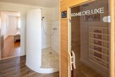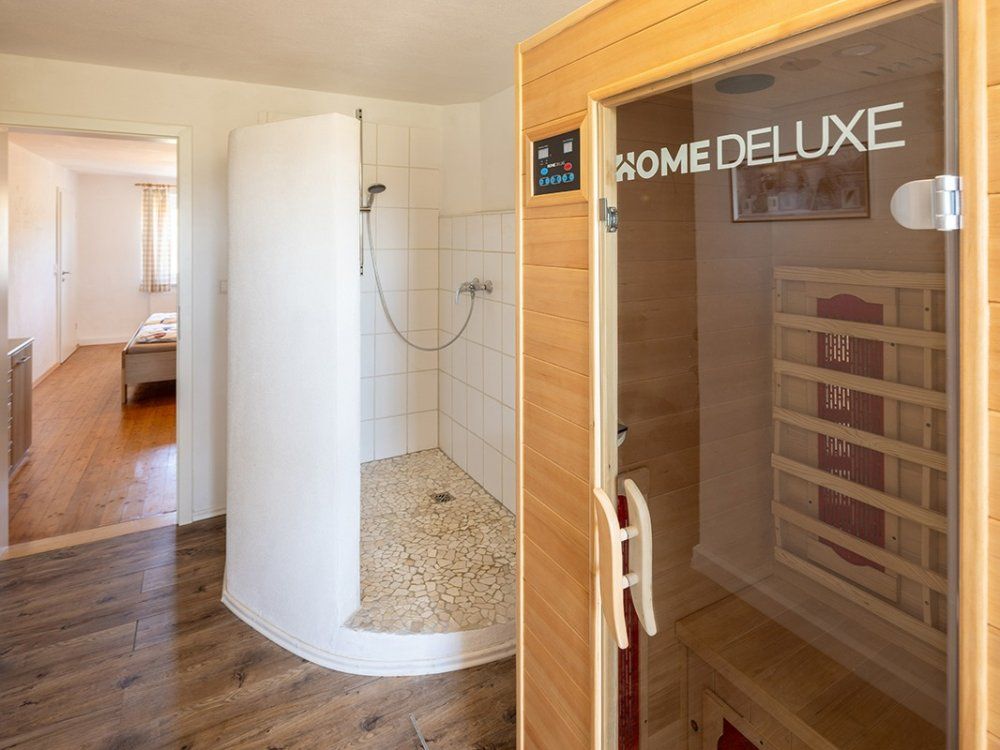 Das Badezimmer mit Fenster ist mit Dusche und WC ausgestattet.Dort findet sich auch ein Ergometer und eine Infrarotkabine.